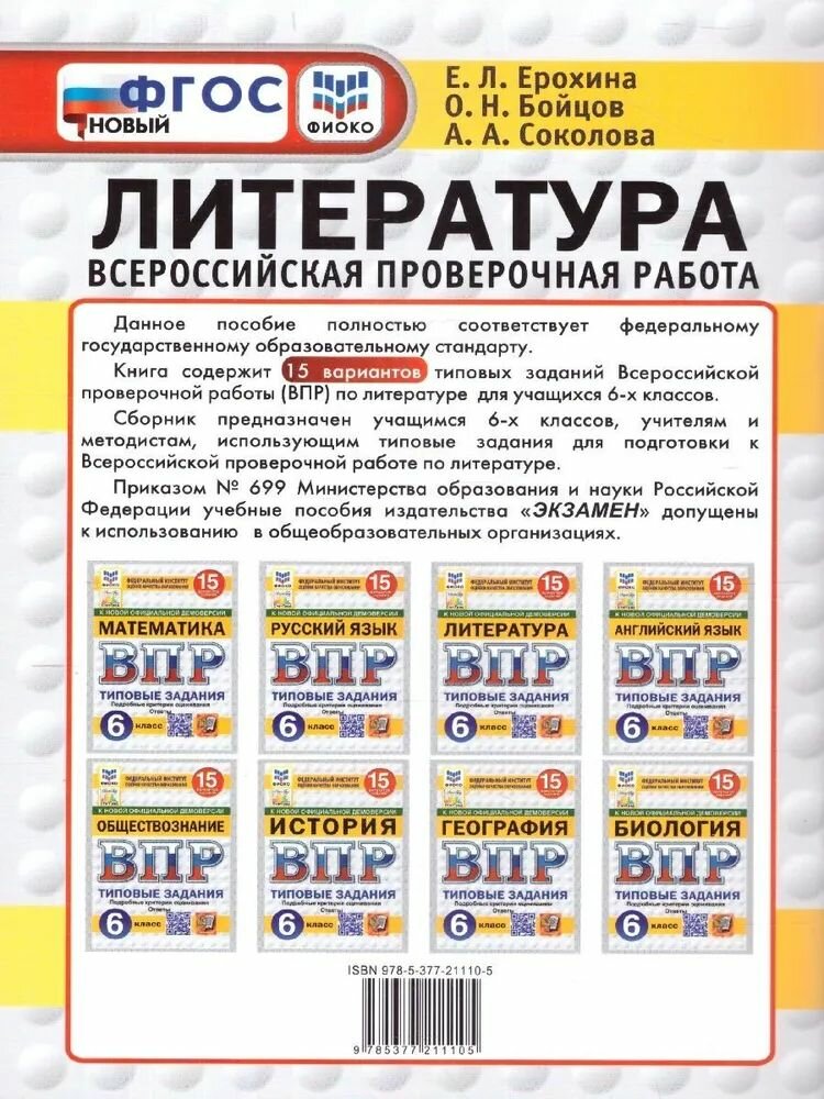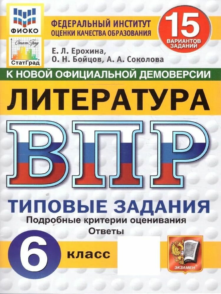 Литература. Всероссийская проверочная работа. 6 класс. Типовые задания. 15 вариантов (Елена Ленвладовна Ерохина, Анастасия Александровна Соколова, Бойцов Олег Николаевич); Экзамен, 2025