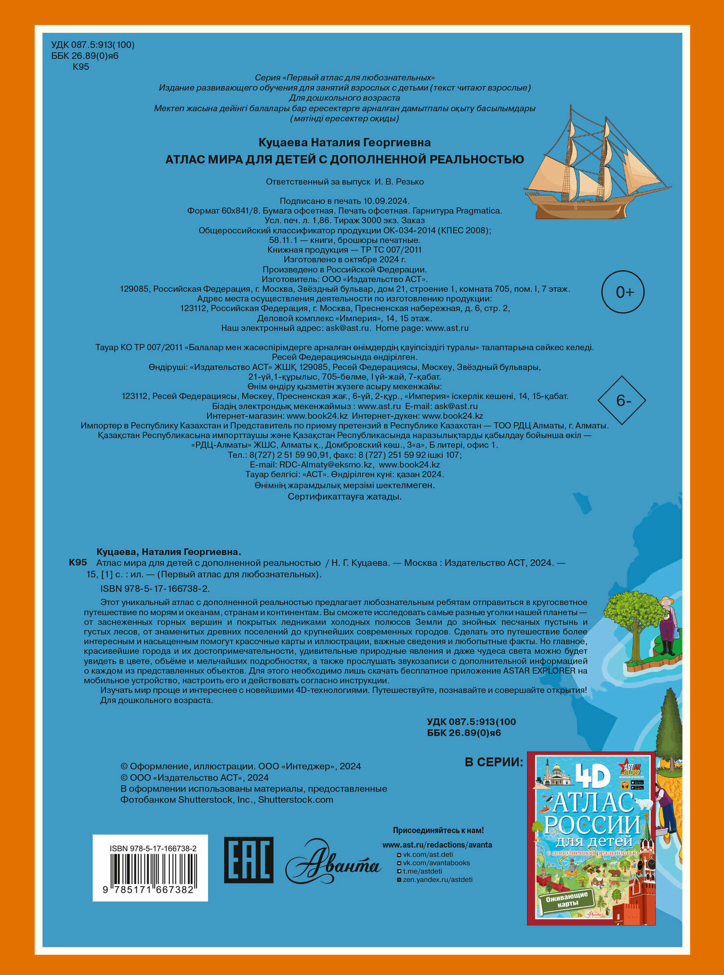 Атлас мира для детей с дополненной реальностью 4D (Наталия Куцаева); Издательство АСТ, 2024