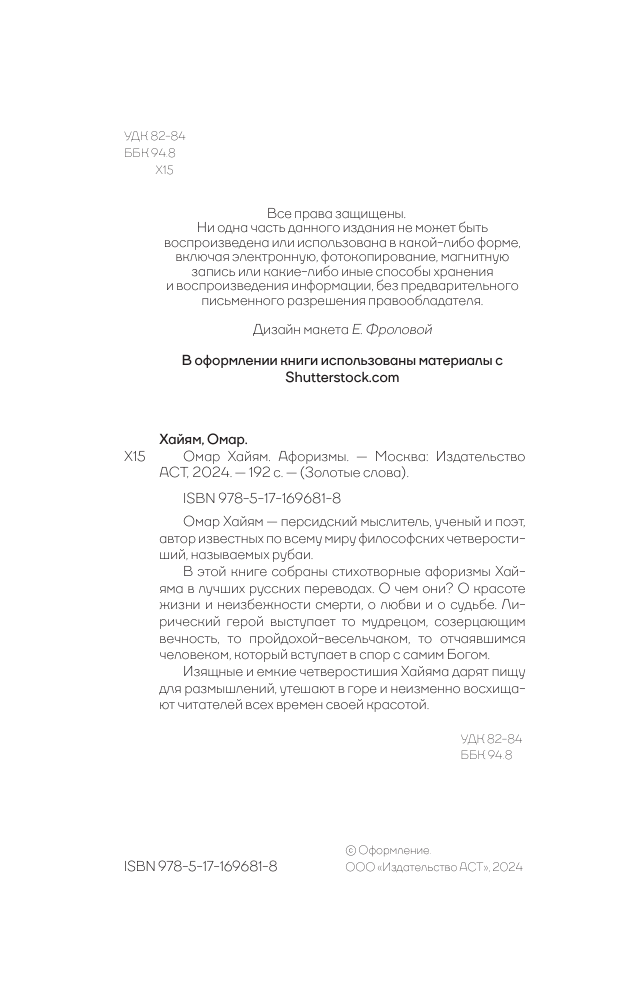 Книга: Омар Хайям. Афоризмы (Группа авторов); Издательство АСТ, 2024