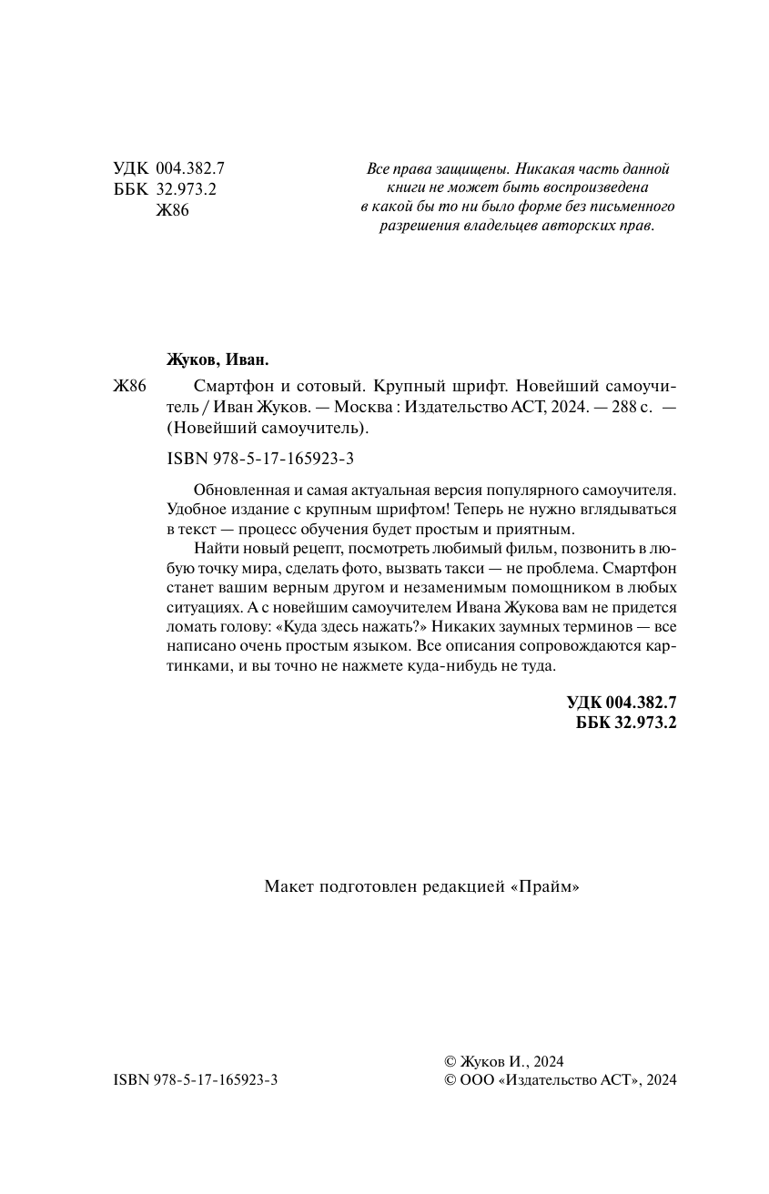 Смартфон и сотовый. Крупный шрифт. Новейший самоучитель (Иван Жуков); Издательство АСТ, 2024