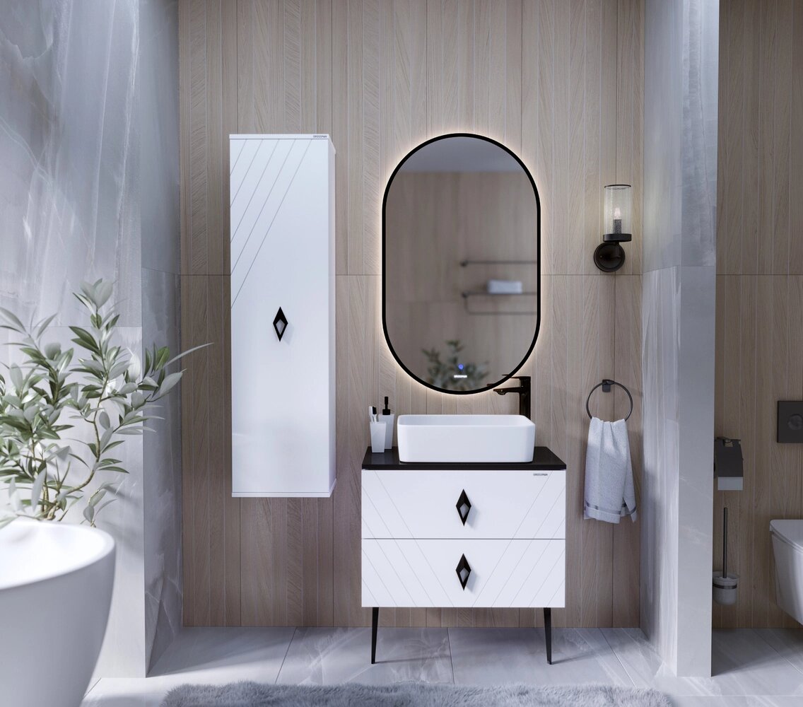 Тумба под раковину Grossman Вива 70 белый глянец несравненное решение для создания комфортной атмосферы в любой ванной комнате. Подвесной способ установки дает возможность не только визуально увеличить пространство, но и обеспечивает быстрый и удобный доступ для уборки.