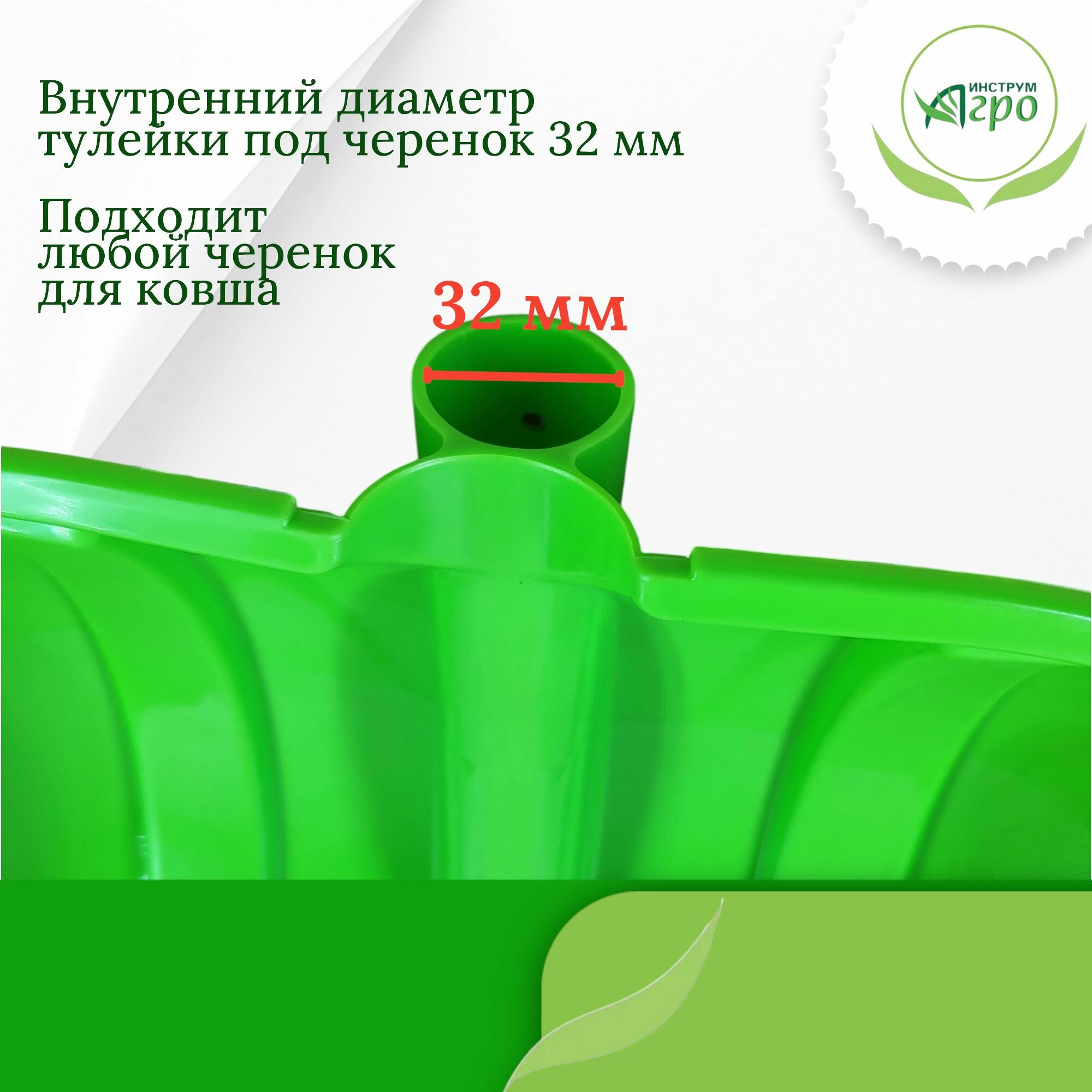 Лопата пластмассовая Инструм-Агро используется не только для уборки снега, но и для зерновых работ. Габариты ковша лопаты и её небольшой вес делают её одной из самых востребованных снегоуборочных лопат. Данную лопату возможно укомплектовать самостоятельно деревянным, алюминиевым, стальным или фибергласовым черенком.Преимущества Ковш лопат изготовлен из первичного блоксополимера пропилена специальной марки Используемый суперконцентрат "Салатовый" придаёт лопате яркий внешний вид Качественный материал обеспечивает высокую прочность изделия Кромка лопаты защищена специальным алюминиевым профилем с небольшим закруглением по краю. Это позволяет легче убирать снег, где территория не очень ровная Поверхность лопатного ковша гладкая, за счет постоянного контроля за состоянием оснастки, что значительно снижает вероятность налипания снега Поставляется без черенка, диаметр тулейки 32 мм