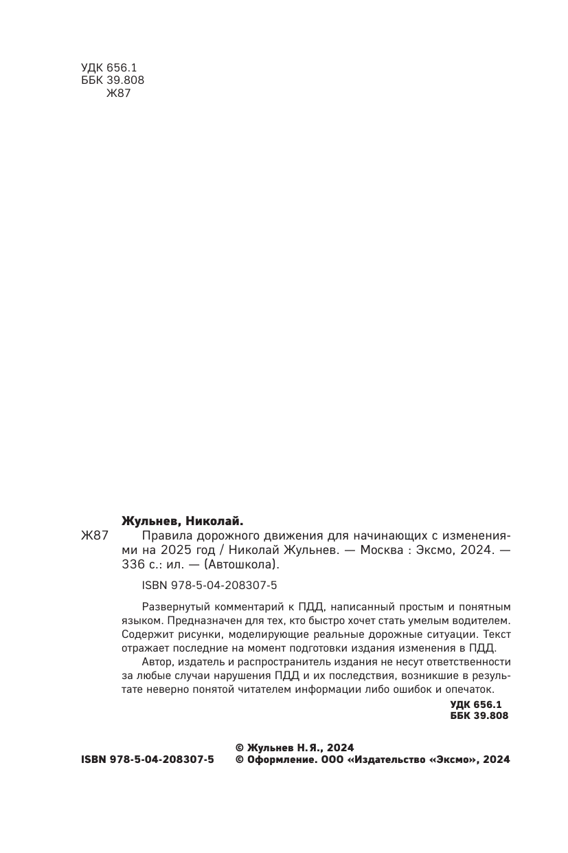 Правила дорожного движения для начинающих с изменениями на 2025 год (Жульнев Николай Яковлевич); ООО "Издательство "Эксмо", 2024