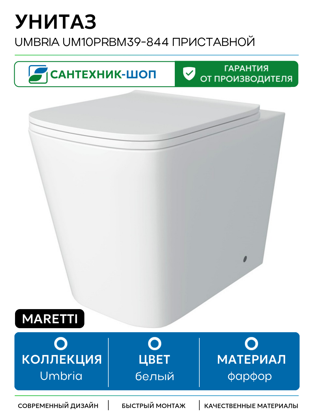 Унитаз приставной Maretti Umbria безободковый с микролифтом, , белый - идеальный выбор для тех, кто ценит комфорт и стиль в ванной комнате. Благодаря приставному монтажу, он легко впишется в любое помещение и позволит сэкономить место. Безободковая конструкция облегчает уборку и повышает гигиеничность, а система антивсплеск предотвращает неприятные брызги. Антигрязевое покрытие предотвращает скопление бактерий и грязи, а быстросъемная крышка-сиденье с микролифтом обеспечивает плавное опускание. Созданный из высококачественного санфарфора унитаз отличается прочностью и долговечностью, а гарантия на 10 лет подтверждает его надежность.