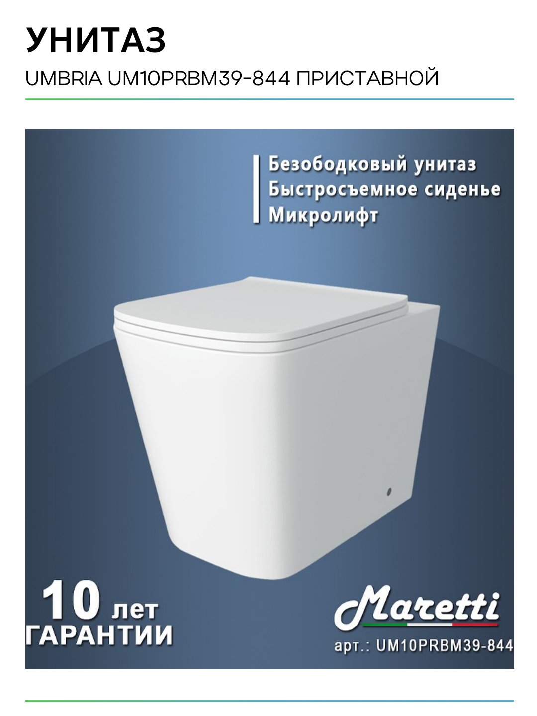 Унитаз приставной Maretti Umbria безободковый с микролифтом UM10PRBM39-844
