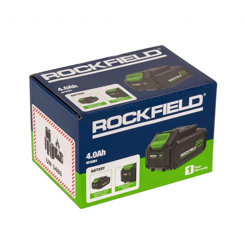 **Аккумулятор Rockfield RF20B4** представляет собой универсальное решение для портативных электроинструментов. Это литий-ионный источник питания с высокой плотностью энергии и практически незаметным уровнем саморазряда. Аккумуляторная батарея легко устанавливается на свое место, что позволяет оперативно менять ее в процессе работы. Для информативности предусмотрен индикатор заряда. Сравнительно небольшие размеры аккумулятора позволяют брать его с собой, поместив в кейс или сумку для рабочих инструментов и аксессуаров.
