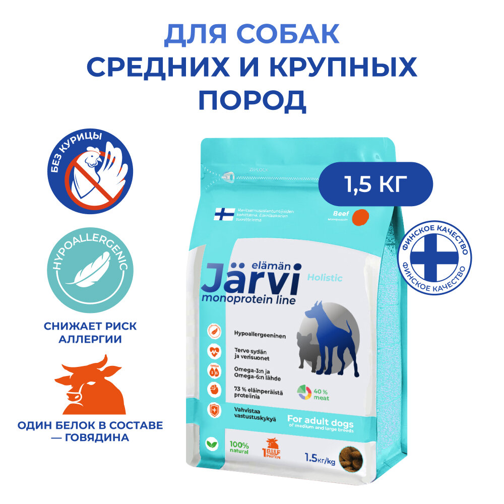Jarvi сухой монопротеиновый полнорационный корм для взрослых собак средних и крупных пород (Говядина 400 г.)