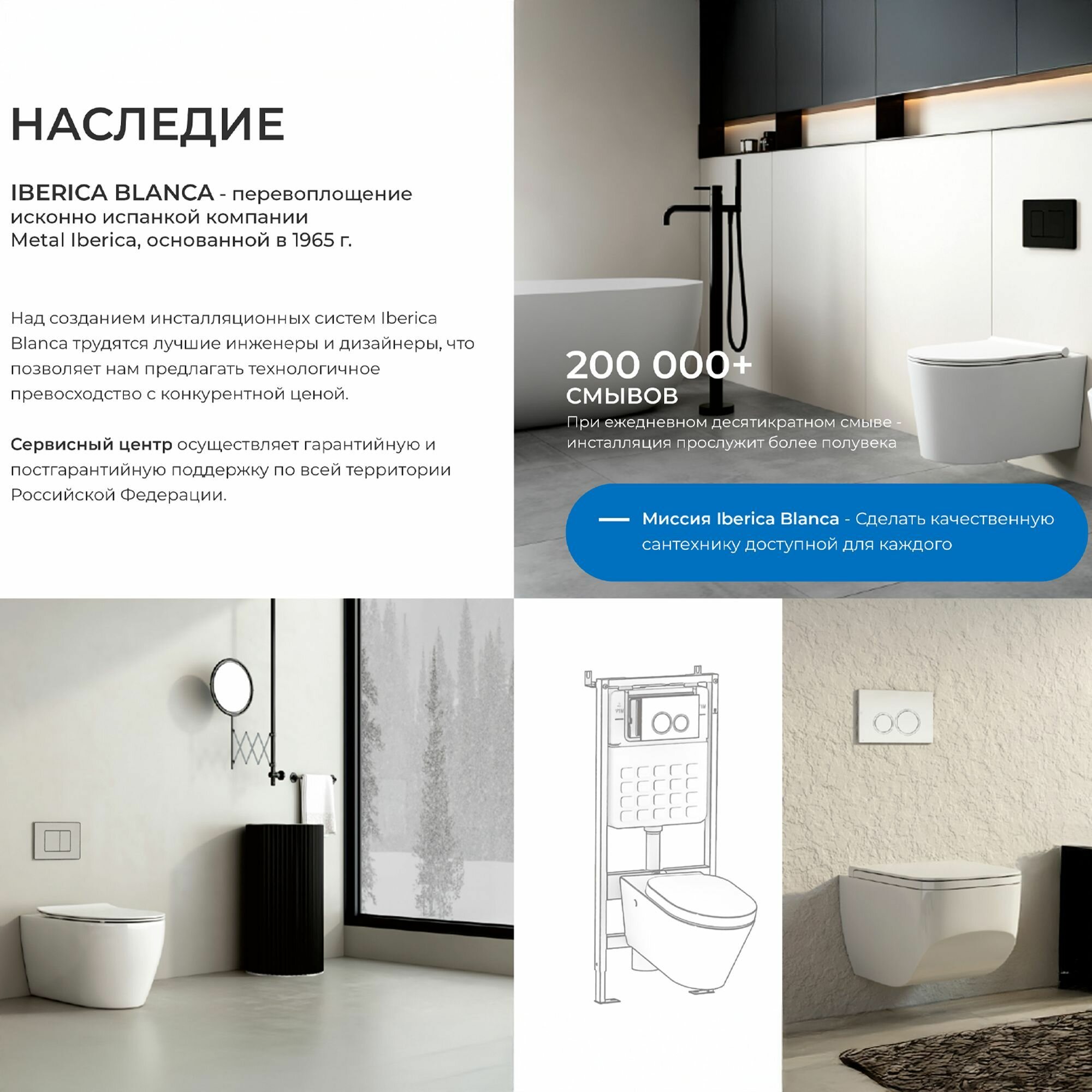 Комплект 3 в 1 Iberica Blanca инсталляция + унитаз Toledo Alto IB.TLA.231.1B1 + кнопка смыва Inox-O IB.B081.003.002 IB001.TLA.231.8132