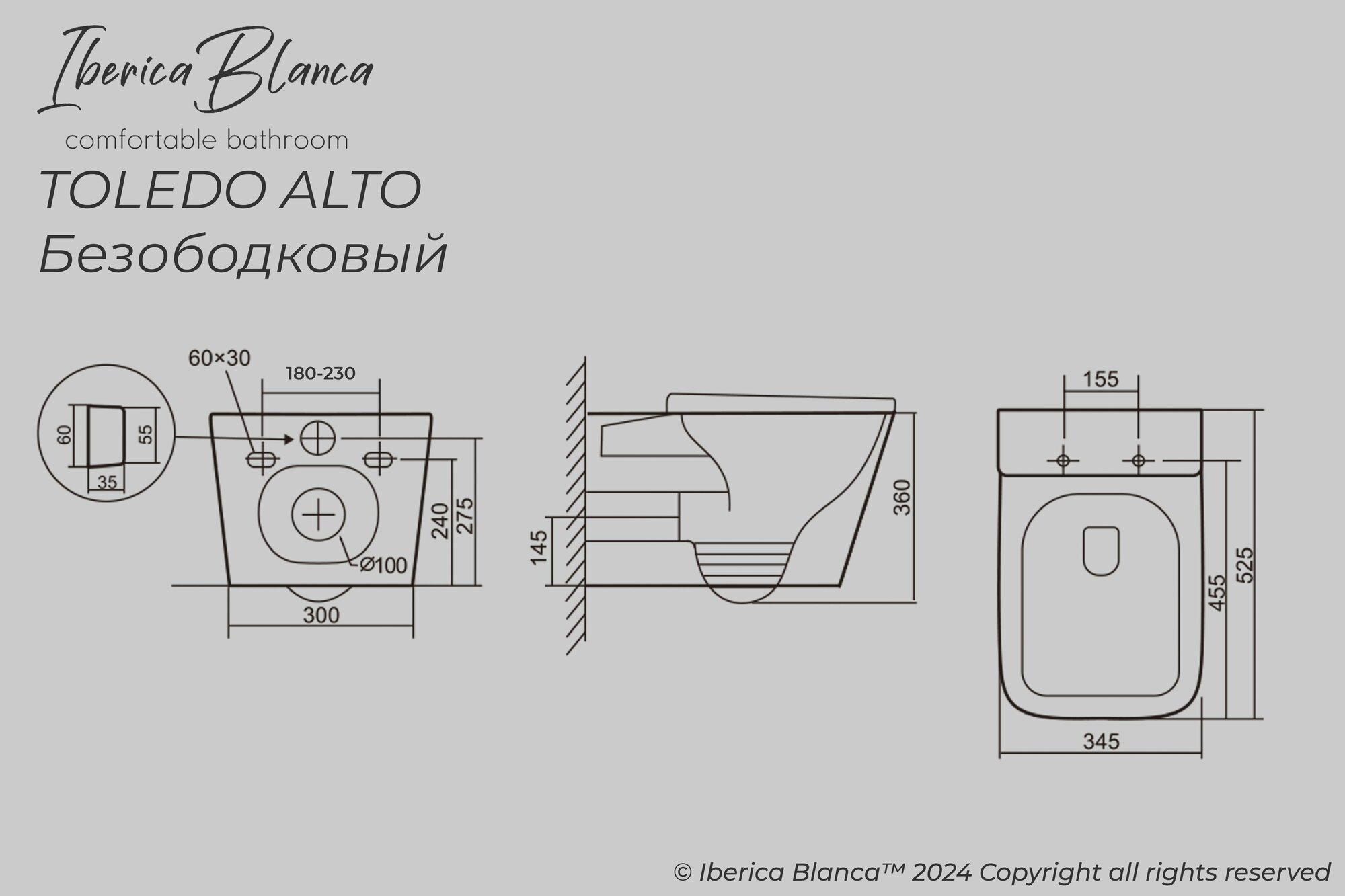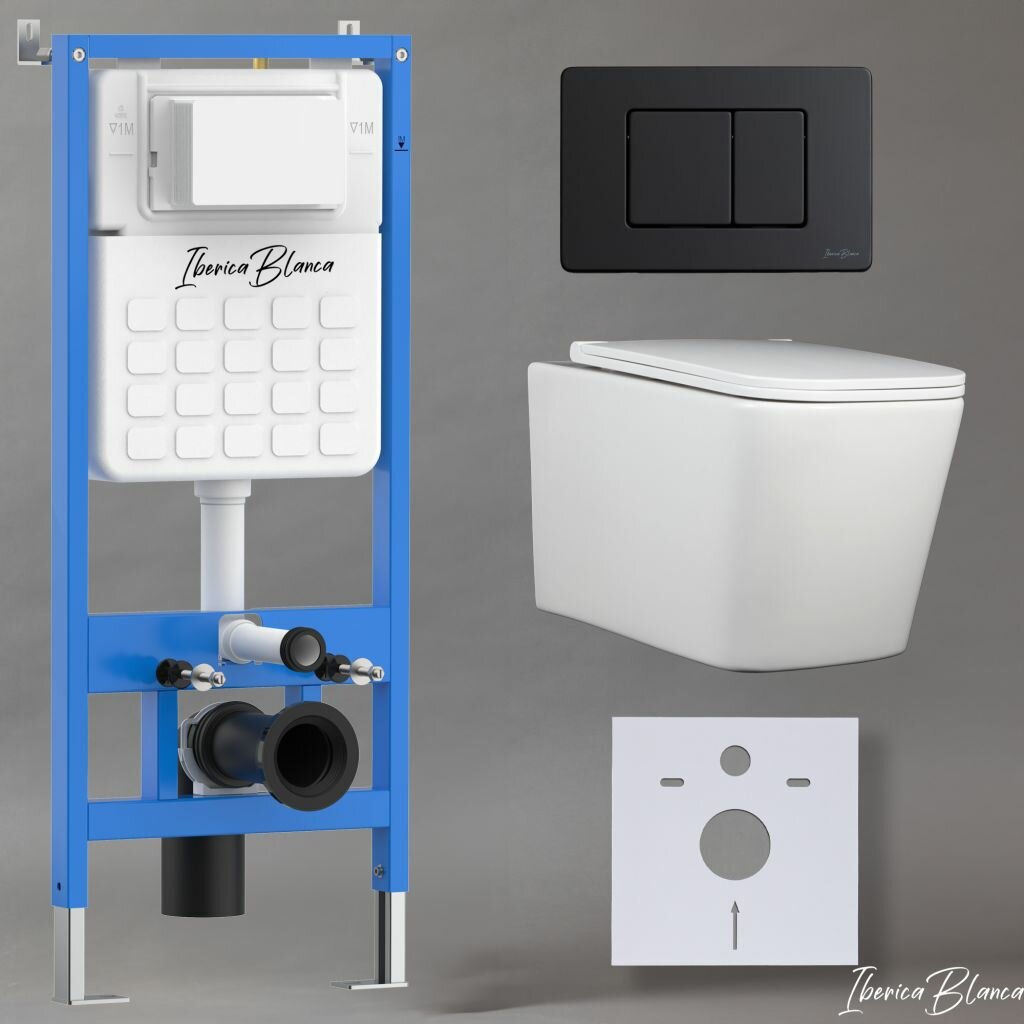 Комплект 3 в 1 Iberica Blanca инсталляция + унитаз Toledo Alto IB.TLA.231.1B1 + кнопка смыва Esti-R IB.B021.008.000 IB001.TLA.231.218