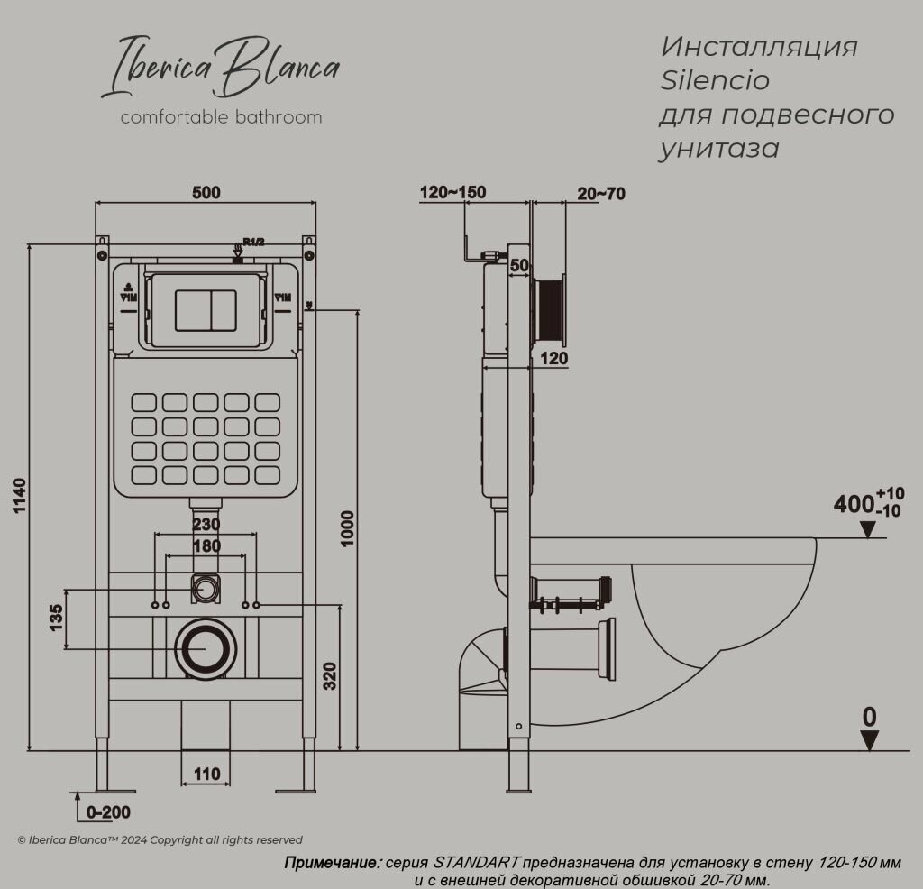 Комплект 3 в 1 Iberica Blanca инсталляция + унитаз Toledo Alto IB.TLA.231.1B1 + кнопка смыва Inox-O IB.B081.005.003 IB001.TLA.231.815