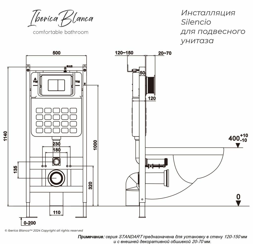 Комплект 3 в 1 Iberica Blanca инсталляция + унитаз Toledo Alto IB.TLA.231.1B1 + кнопка смыва Inox-O IB.B081.002.003 IB001.TLA.231.812