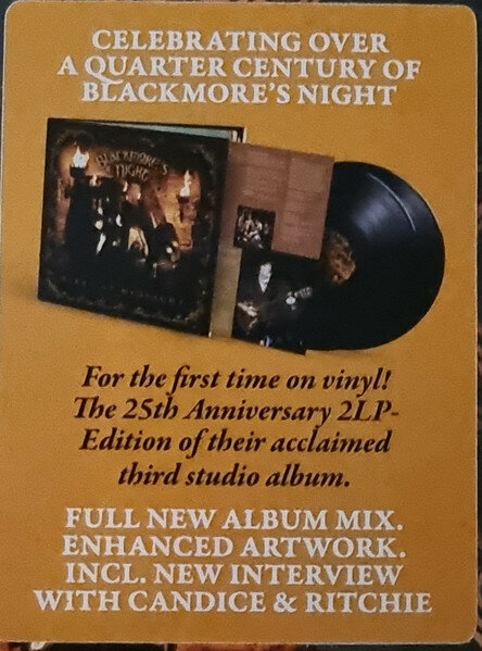 К 25-летию впервые на виниле выходит Fires at Midnight, третий студийный альбом фолк-рок-группы Ричи Блэкмора Blackmores Night. Издание на виниле 180 г.. На этом альбоме Blackmores Night начали включать в свои песни электрогитары наряду с акустическими инструментами. К этому времени они уже несколько лет гастролировали, давали концерты во дворах замков, церквях и театрах. Однажды поздно вечером, когда они покидали концертную площадку в Чехии, родилась идея Fires At Midnight. «Это была ночь костров, и мы могли видеть все эти костры, которые горели на склонах холмов», — вспоминает Кэндис Найт, — «и это вдохновило на идею песни „Fires At Midnight“». Издание 25th Anniversary Edition «Fires At Midnight» было полностью ремикшировано с оригинальных многодорожечных мастеров. Альбом будет выпущен в виде виниловой пластинки впервые и включает все бонус-треки из предыдущих изданий, а также две совершенно новые версии с новыми вокальными партиями, записанными Кэндис Найт в 2024 году («Written In The Stars» и заглавный трек альбома). Издание включает никогда ранее не публиковавшиеся фотографии, а также обширное новое интервью с Кэндис и Ричи, воскрешающее воспоминания о создании альбома. Фолк-рок-группа Blackmore’s Night основана в 1997 году бывшим гитаристом «Deep Purple» и «Rainbow» Ричи Блэкмором (акустические и электрические гитары, мандола, лютня и другие инструменты) и его женой, Кэндис Найт (вокал, духовые, перкуссия). Музыкальной основой и главным вдохновением музыкантов является музыка эпохи Возрождения. Группа также часто исполняет кавер-версии песен различных исполнителей XX века, а также песни, написанные Блэкмором в составе «Rainbow».