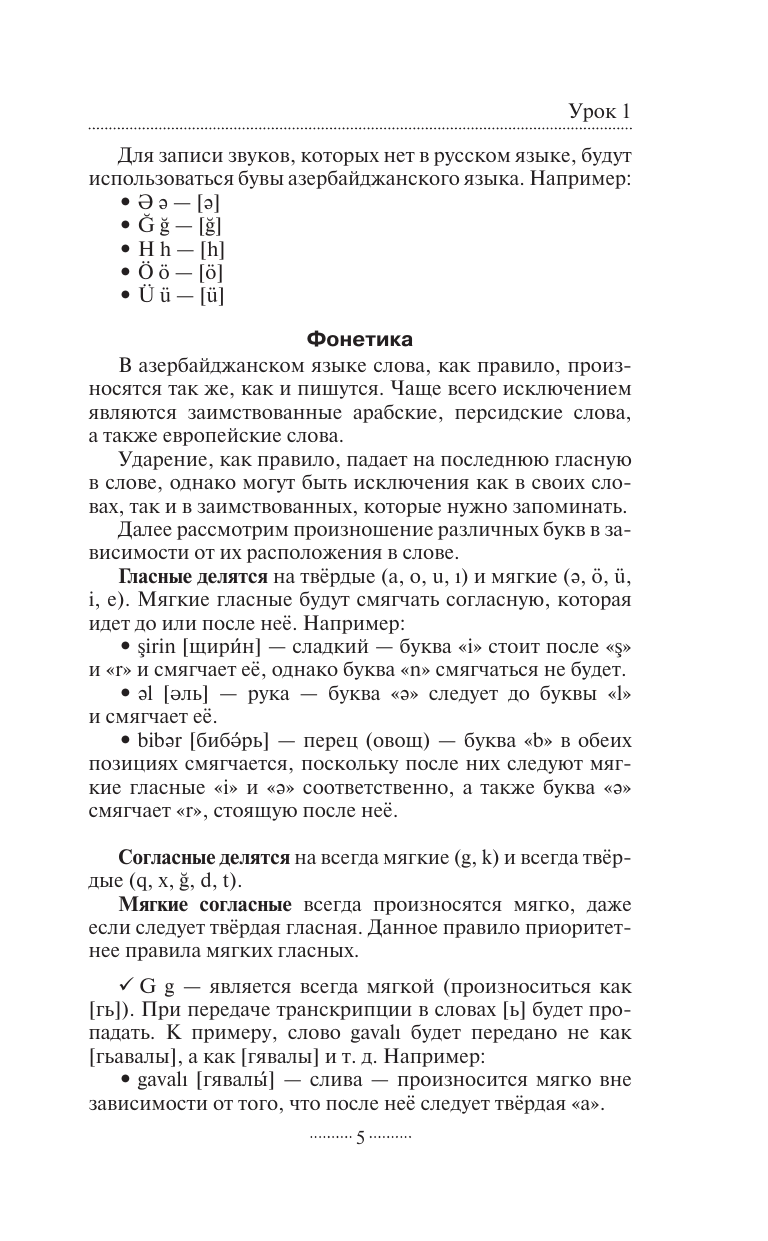 В книге даны основные темы, необходимые для тех, кто только приступает к изучению азербайджанского языка. В начале самоучителя приводится урок, посвященный фонетике, чтобы с самого начала учащийся мог правильно читать на азербайджанском языке. Каждый урок сбалансирован: в нем доступно дается теоретический материал и вводится полезная лексика, которая затем отрабатывается в упражнениях. В конце самоучителя есть ключи, поэтому себя можно проверить в любой момент.