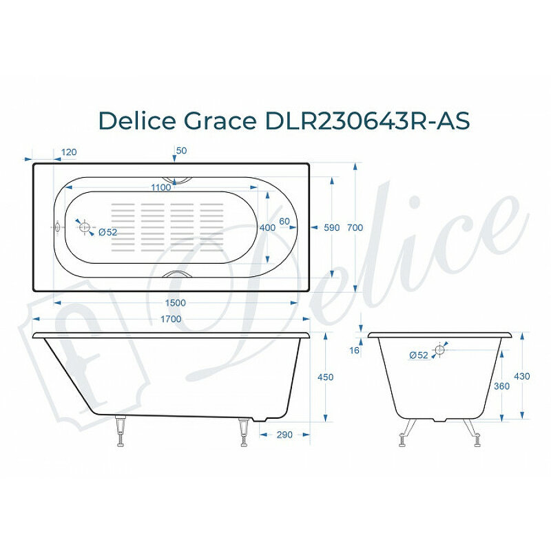 Сервис сравнения цен СкидкаГИД предлагает сравнить цены на товар «Ванна чугунная Delice Grace 170x70 DLR230643R-AS с отверстиями под ручки и антискользящим покрытием, белая»