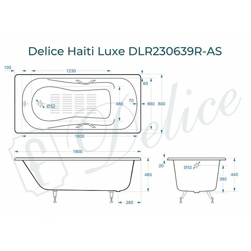 Сервис сравнения цен СкидкаГИД предлагает сравнить цены на товар «Ванна чугунная Delice Haiti Luxe 180x80 DLR230639R-AS с отверстиями под ручки и антискользящим покрытием»