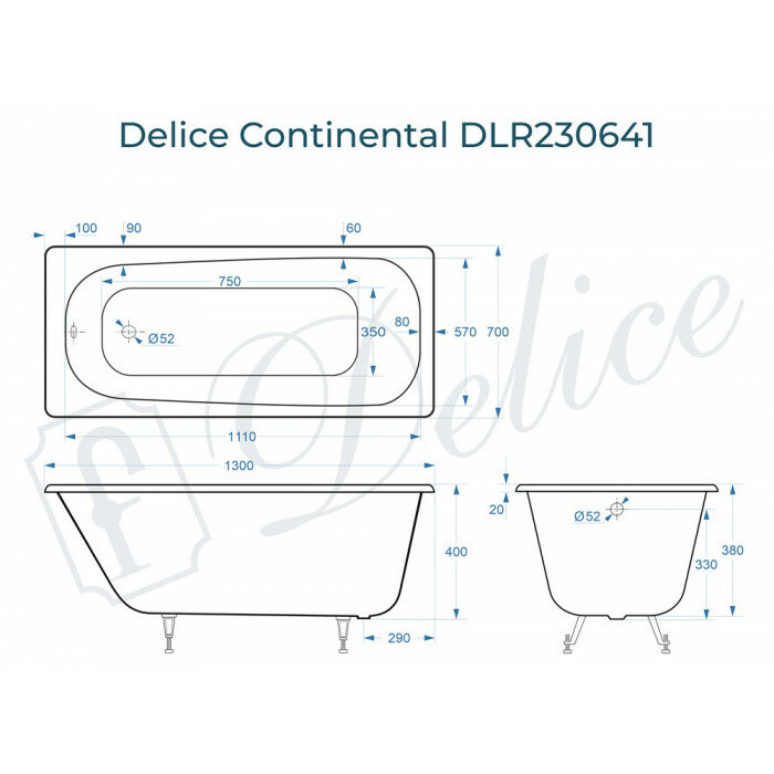 Ванна чугунная Delice Elite 120x70 DLR230640 белая