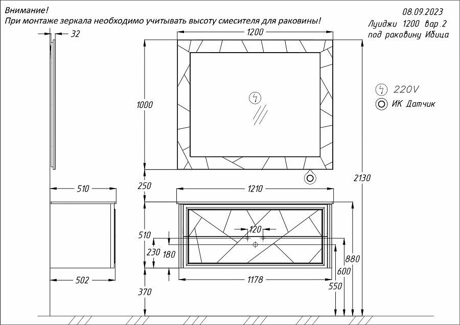 - Размеры тумбы (ШхВхД): 1178х510х502 мм.