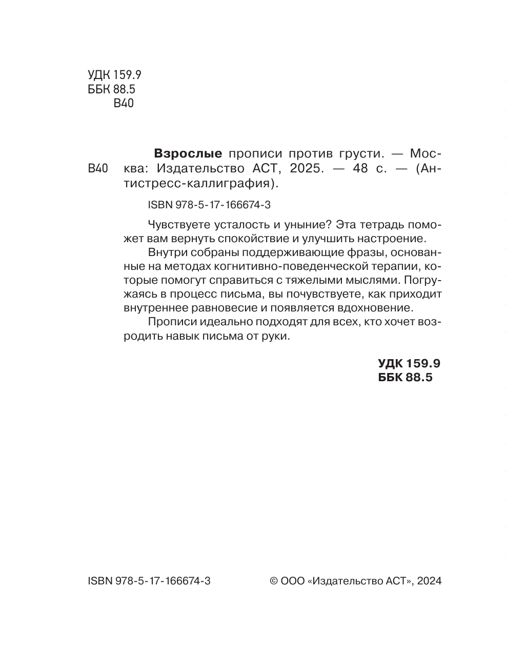 Взрослые прописи против грусти; АСТ, 2024