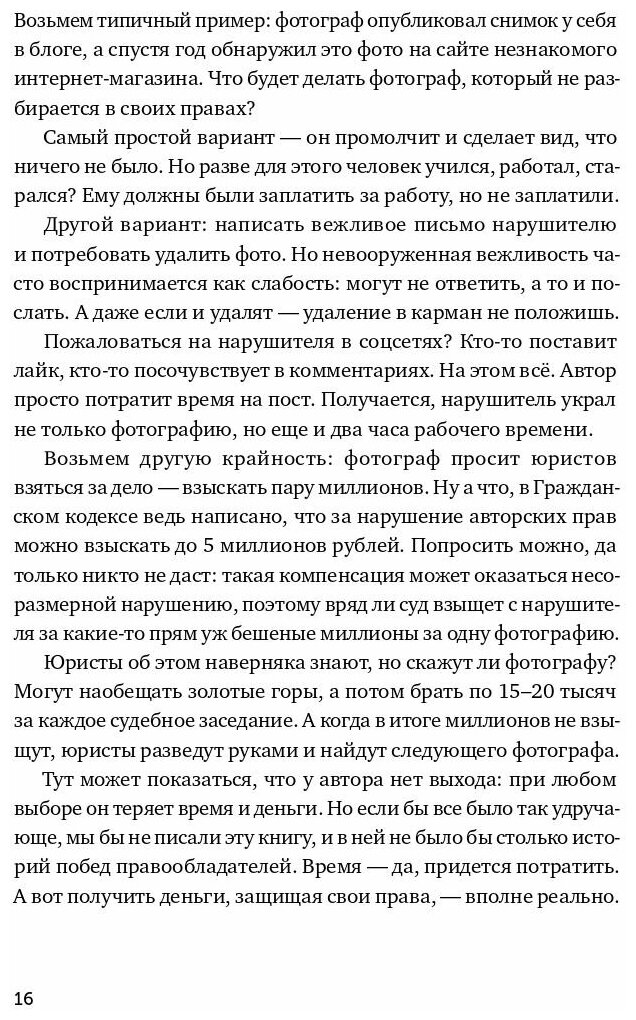 Если вы открыли эту книгу, то наверняка что-то создаете — текст, код, фото, музыку или строите собственный бизнес. А значит, рано или поздно кто-то без спроса может взять созданное вами и выдать за свое. Тогда вам понадобится защитить свои права. Юрист Алексей Башук вместе с автором «Пиши, сокращай», «Ясно, понятно» и других бестселлеров о копирайтинге и редактуре Максимом Ильяховым написали очень полезную книгу в помощь всем, кто зарабатывает деньги своими руками и умом. Подробно, компетентно и с обилием практических примеров они рассказывают, как работает российская система авторского права, зачем на самом деле нужны патенты и товарные знаки, как не терять деньги на компенсациях и штрафах и отстаивать свои права в битве с плагиаторами, пиратами и конкурентами.