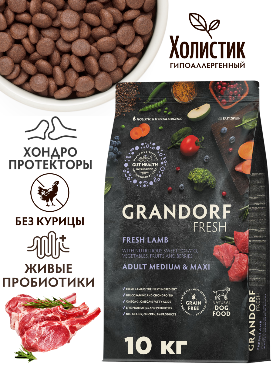 Сухой корм для собак Grandorf Fresh Dog для средних и крупных пород из свежего мяса ягнёнка с бататом 3 кг