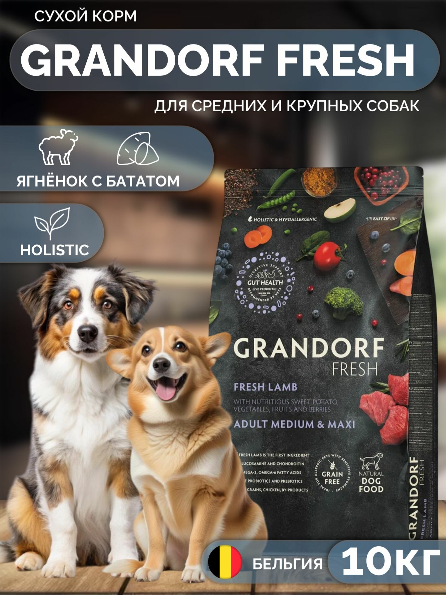 Сервис сравнения цен СкидкаГИД предлагает сравнить цены на товар «Сухой корм для собак Grandorf Fresh Dog для крупных пород из свежего мяса ягнёнка с бататом 3 кг»