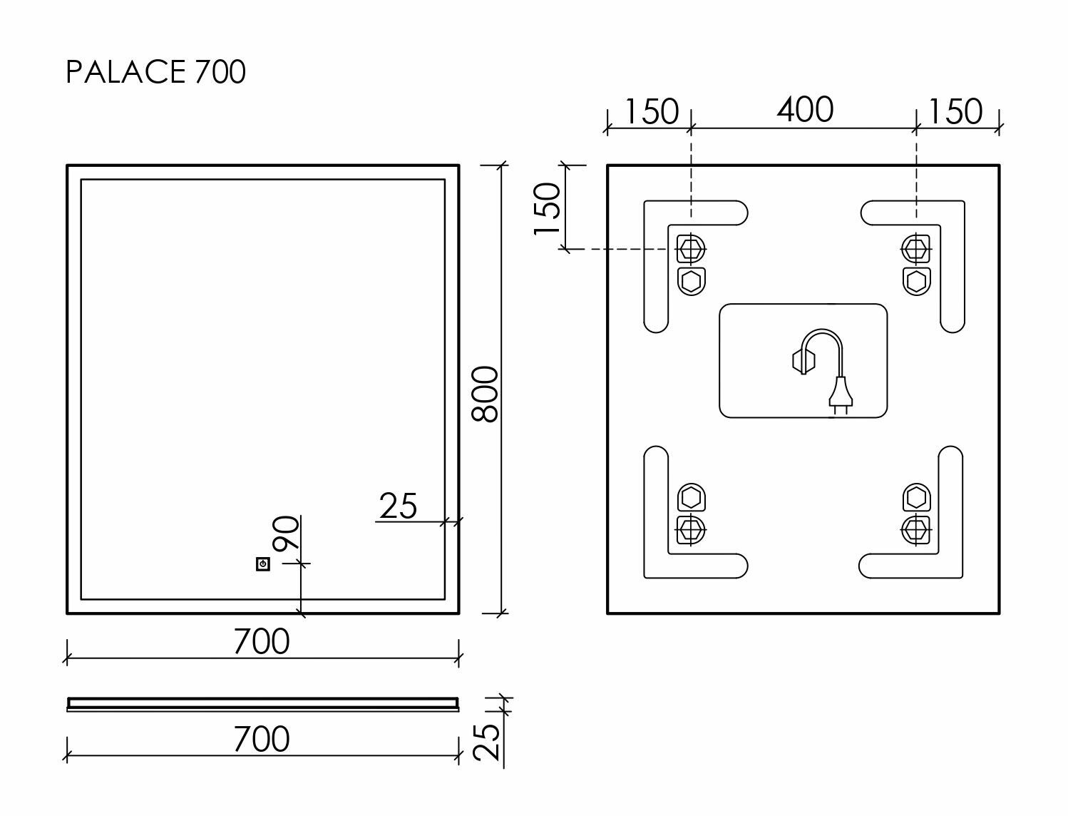 Зеркало Sancos Palace 70х80 с подсветкой с сенсорным выключателем PA700
