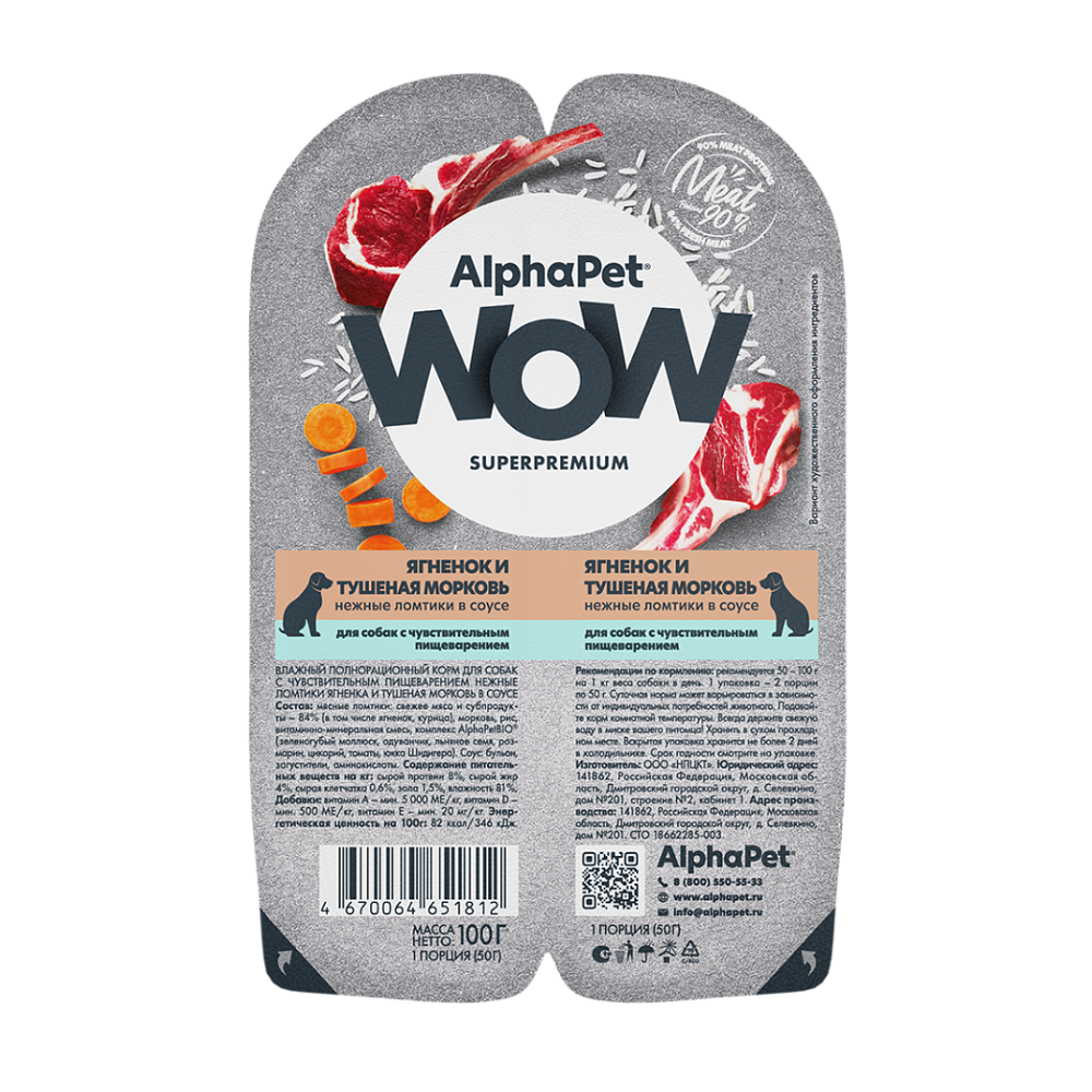 Здоровый и активный питомец – главная задача каждого хозяина. Команда AlphaPet создает и производит полезные корма высшей категории качества Holistiс, давая возможность каждому владельцу быть уверенным в правильном выборе кормления для своего животного. AlphaPet SUPERPREMIUM - супер-премиальное питание на основе натуральных ингредиентов. Линейка питания для животных, владельцы которых хотят быть уверены в лучшем выборе корма для своего питомца. Максимально открытый и понятный состав продукта, приготовленного по инновационной технологии из свежего мяса и с содержанием большого количества мясного белка!Пашеты AlphaPet:Из свежего мяса;Беззерновая рецептура;Ингредиенты качества human grade;Уникальный комплекс AlphaPetBio;Вкусовая привлекательность и поедаемость проверены в собственно центре AlphaPet.*Не содержит ГМО искусственных красителей, ароматизаторов, консервантов, кукурузу, пшеницу и добавленный глютен.