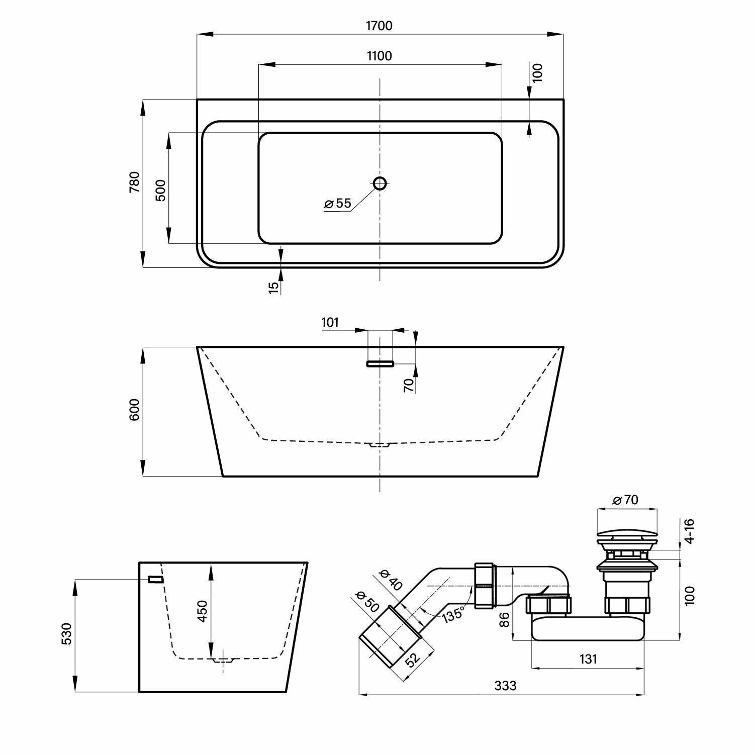 Форма ванны Wellsee прямоугольная размером 170 см на 78 см отлично подойдет к любому интерьерному решению, в различных вариантах размещения внутри ванной комнаты. Пристенная установка ванны Bromance из акрила это наиболее традиционный вид установки, а при использовании декоративного экрана пространство под ванной можно использовать как место хранения моющих средств. Оптимальная глубина акриловой ванны составляет 45 см, позволяет принимать ванну с максимальным комфортом и полным расслаблением. Ванна Wellsee Bromance выполнена со строгим соблюдением всех отличительных элементов современного стиля.