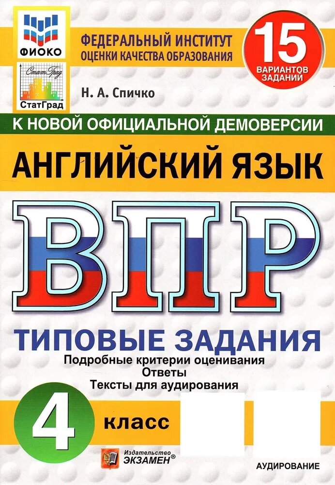 Всероссийская проверочная работа. Английский язык. 4 класс. Типовые задания. 15 вариантов заданий. ФГОС Новый (Наталья Александровна Спичко); Экзамен, 2025