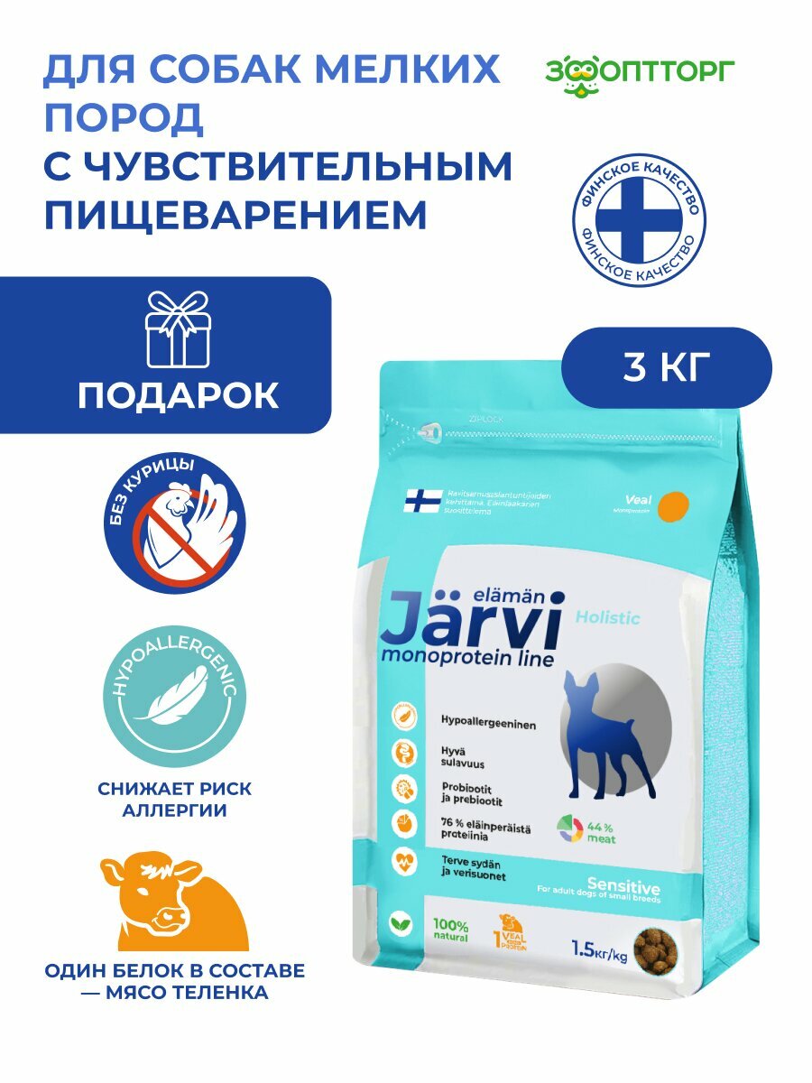 Jarvi сухой монопротеиновый полнорационный корм для взрослых собак мелких пород с чув. пищеварением (Телятина 15 кг.)