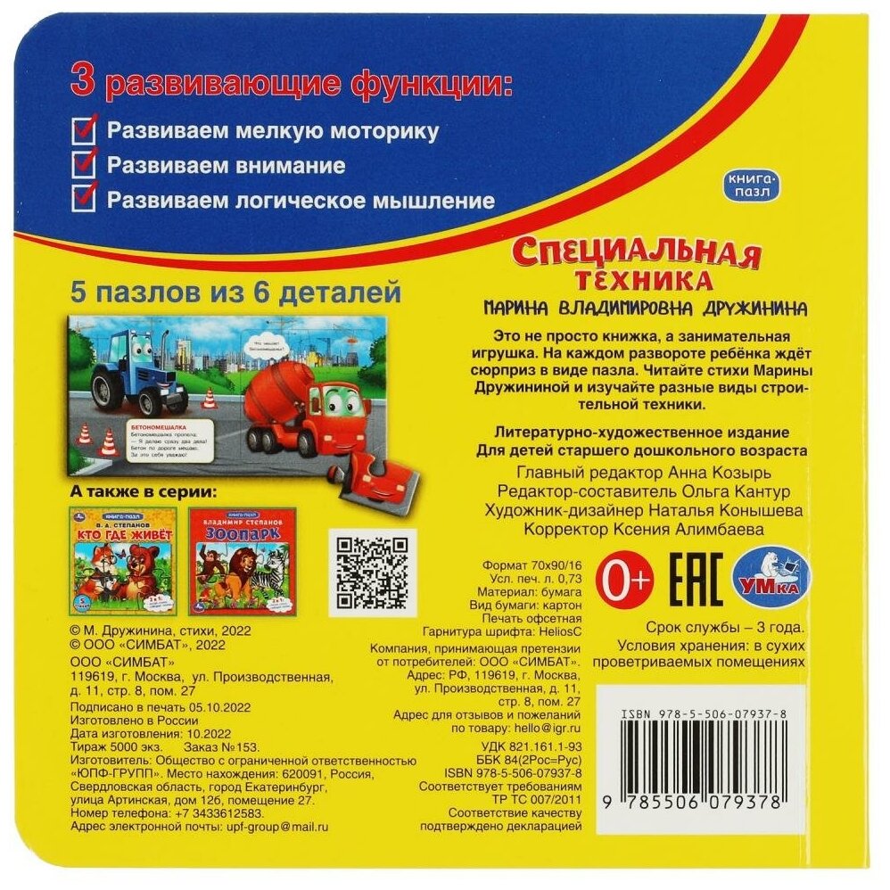 Книга-пазл 2 в 1 «М. Дружинина. Специальная техника» ТМ «УМка» станет прекрасным подарком для ребёнка: