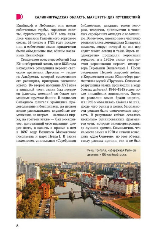 Путеводитель рассчитан на самостоятельных путешественников, готовых познакомиться с уникальным регионом, богатым историей, культурой, природными объектами. В путеводителе вы найдете описания маршрутов самых интересных прогулок по городам Калининградской области. Фотографии дадут вам представление о местности и достопримечательностях. Предложенные в начале глав книги QR-коды с переходом на карты с маршрутами, значительно облегчат ориентирование. С нашим путеводителем за меньшее количество времени вы увидите больше в Калининграде, Светлогорске, Зеленоградске, Балтийске, Янтарном, Гвардейске и на Куршской косе. Старые форты и современные музеи, уникальные природные достопримечательности и сувениры – обо всем этом в книге небольшого формата в мягкой обложке, что позволит вам взять издание с собой в путешествие. Статьи в нашем путеводителе разделены на категории для удобства читателей. Каждая статья отмечена пиктограммой, которая указывает на её направленность: история, культура, природа или активный отдых. Это позволит вам легко определить, какая информация будет наиболее полезна именно для вас. Читайте и гуляйте с удовольствием!