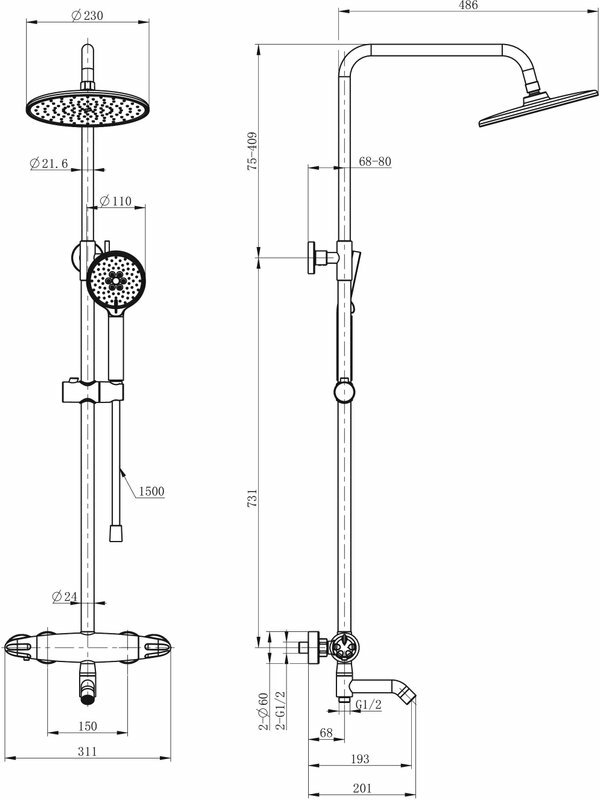 | Габариты верхнего душа | 230 |