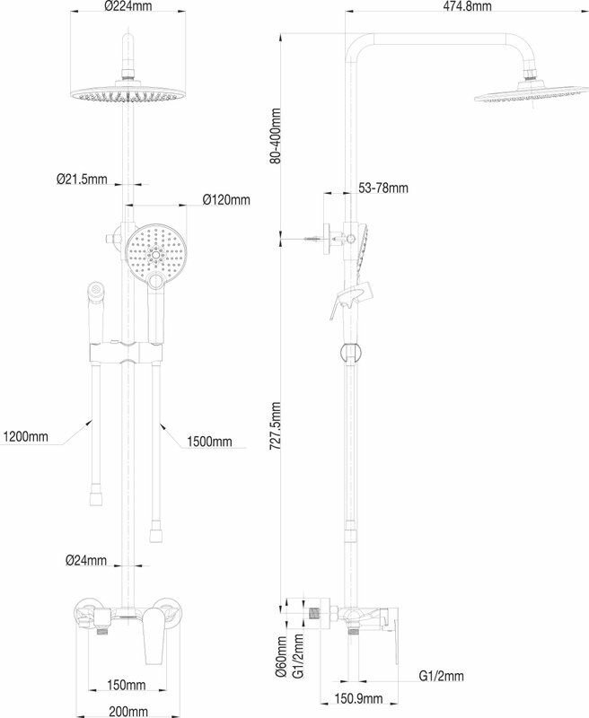 | Диаметр верхнего душа, см | 22.4 |
