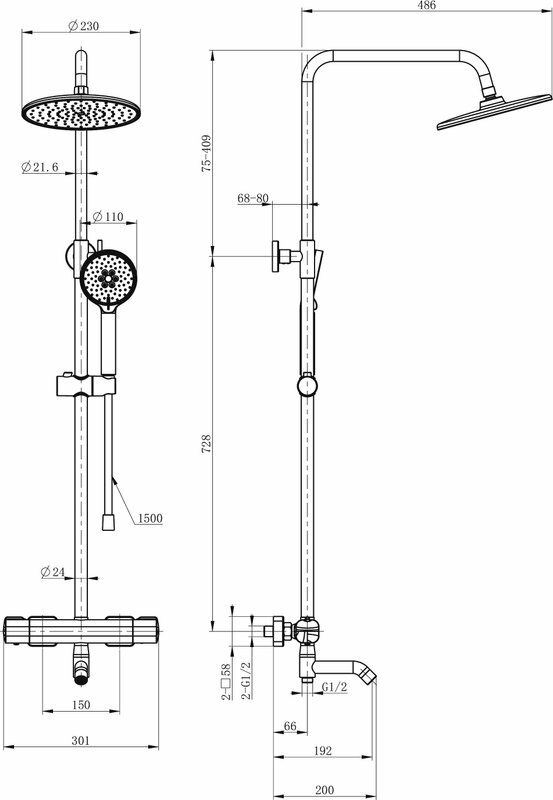 | Габариты верхнего душа | 230 |