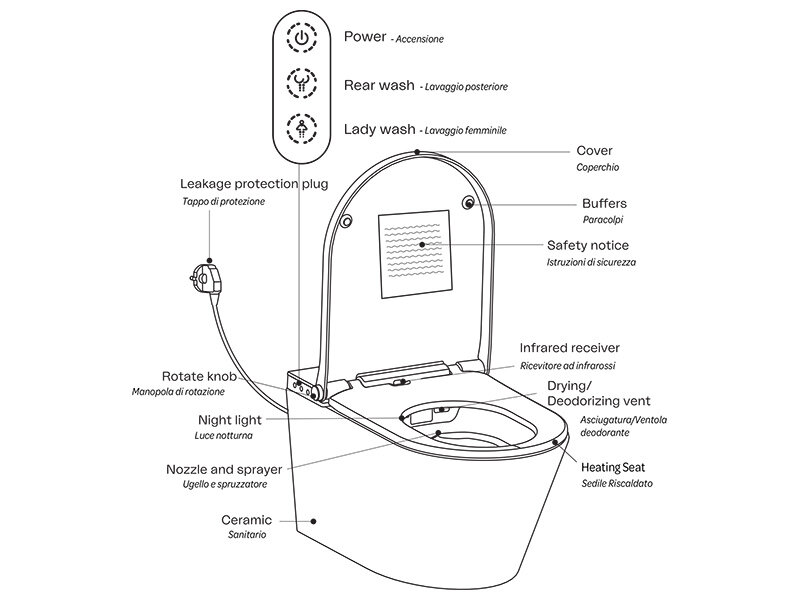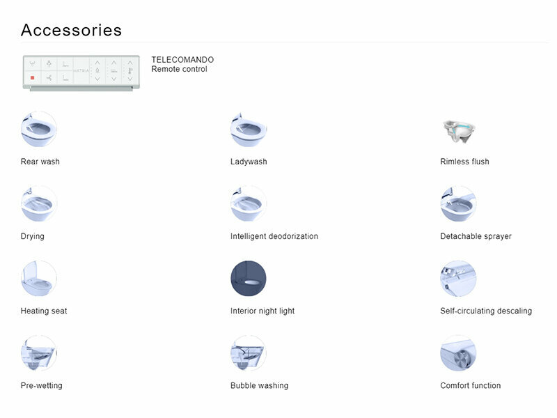 Помимо классических гигиенических функций с возможностью регулировки интенсивности и температуры водной струи, модель обеспечивает сушку теплым воздухом и дезодорацию. Сидение с подогревом также имеет встроенную подсветку для использования унитаза в ночное время. Модель автоматизирована и все функции управляются с помощью удобного пульта дистанционного управления или с боковой панели.- Несъемное тонкое сиденье легко поднимается и опускается