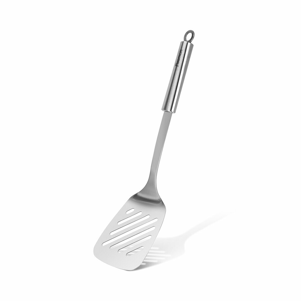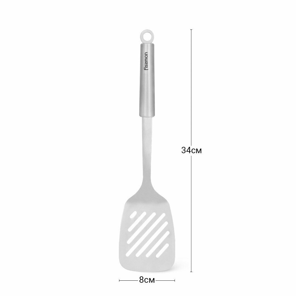 Создавая инновационные кухонные инструменты, компания FISSMAN помогает не только профессиональным поварам, но и любителям раскрыть свою любовь к кулинарии и проявить талант в кулинарном искусстве. Прочная и долговечная лопатка с прорезями ZONDA из нержавеющей стали от компании FISSMAN — это сочетание стильного, удобного дизайна и качественного материала. Лопатка с прорезями станет приятным дополнением на Вашей кухне. • Надежность и долговечность - обладает коррозийной стойкостью • Универсальность - подойдет не только для перемешивания и переворачивания продуктов в процессе жарки или тушения, давая стечь жидкости и жиру, но и для подачи готовых блюд • Крючок на ручке - удобное хранение • Устойчивость к загрязнению, легкость ухода • Безопасно для здоровья и окружающей среды • Одобрено профессионалами Приобретая продукцию компании FISSMAN, Вы делаете выбор в пользу качества, здоровья и безопасности. Творите, пробуйте новое, балуйте себя и любимых. FISSMAN желает вам успехов на кулинарном поприще!