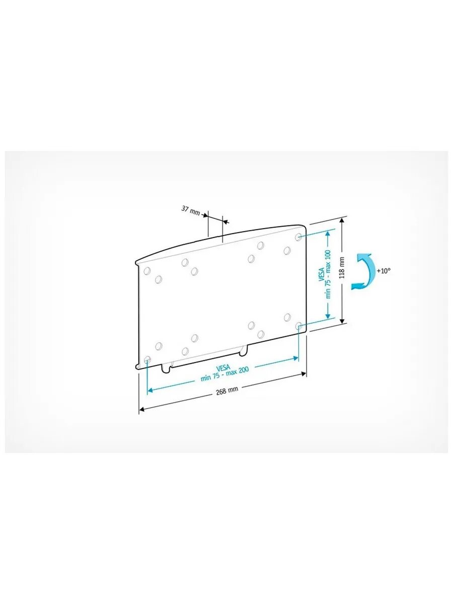 Антибликовый кронштейн для телевизора Holder обладает функцией наклона вверх на 5 градусов или вниз на 10 градусов, которая обеспечивает комфортный просмотр без бликов. Наклон избавляет от отблесков солнца и ламп. Цвет конструкции – черный, пристенный крепежный элемент изготовлен в красном цвете. Телевизор находится на фиксированном расстоянии от стены – 37 мм. Максимальная диагональ экрана телевизора – 32”, минимальная – 19”. Кронштейн выдерживает вес не более 30 кг. Механизм можно без труда установить и выровнять самостоятельно, т. к. в комплект входят все необходимые крепежи и инструкция по монтажу.