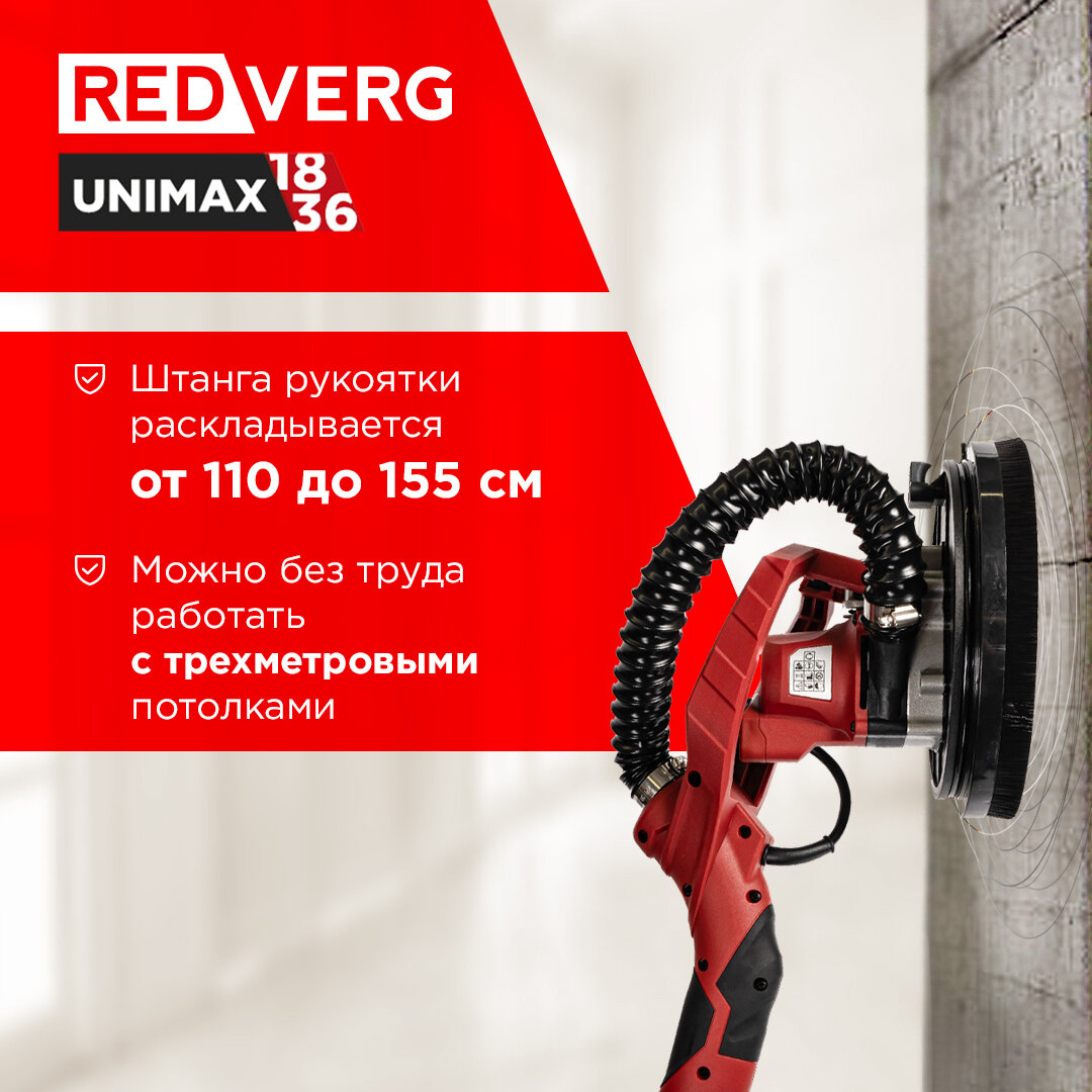 Машина шлифовальная для стен и потолков аккумуляторная REDVERG RD-WS18BL/U (без акк, без з/у) - универсальный и практичный инструмент для ремонта помещений. Предназначена для сухого шлифования стен и потолков. Эффективная система пылеудаления с возможностью подключения пылесоса обеспечит чистоту на рабочем месте. Благодаря плавной регулировке оборотов и оптимальной жесткости шлифовальной тарелки, качество поверхности после использования машины, соответствует требованиям, предъявляемым к поверхности перед выполнением улучшенной и высококачественной покраски.