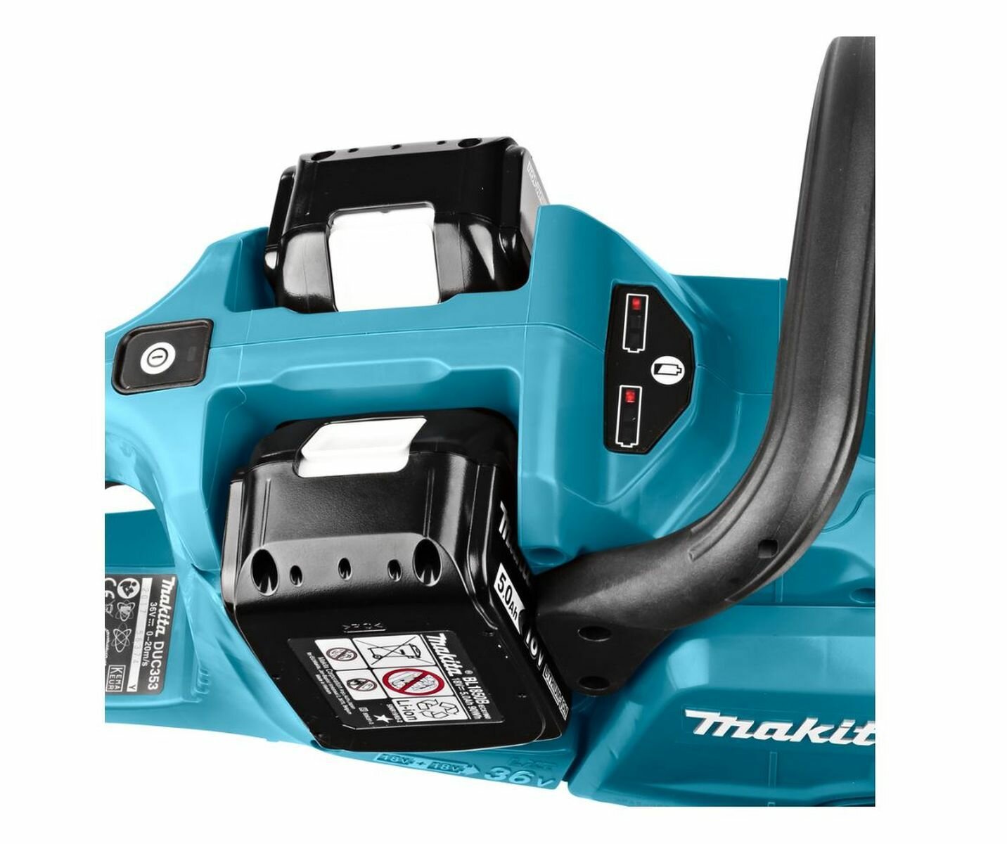 Аккумуляторная цепная пила Makita DUC353PT2 - предназначена для работ по рубке леса, для резки бетона и льда, заготовки дров. Применяется в бытовых, профессиональных и любительских целях. Работает от двух аккумуляторов Li-ion 18 В, обеспечивая высокую скорость пиления и производительность. Пила оснащена бесщеточным двигателем и отличается малым шумом, способствуя комфортной работе. Имеет инерционный тормоз цепи, для безопасности оператора. Смазывание цепи выполняется в автоматическом режиме.