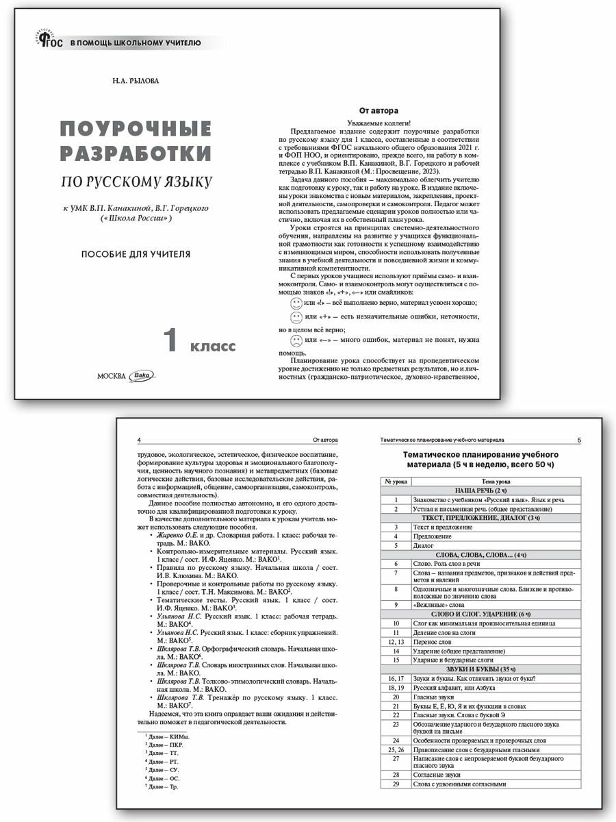 Поурочные разработки по русскому языку. 1 класс. К УМК В.П. Канакиной В.Г. Горецкого ("Школа России"). Пособие для учителя. ФГОС Новый (Рылова Наталья Александровна); Вако, 2025