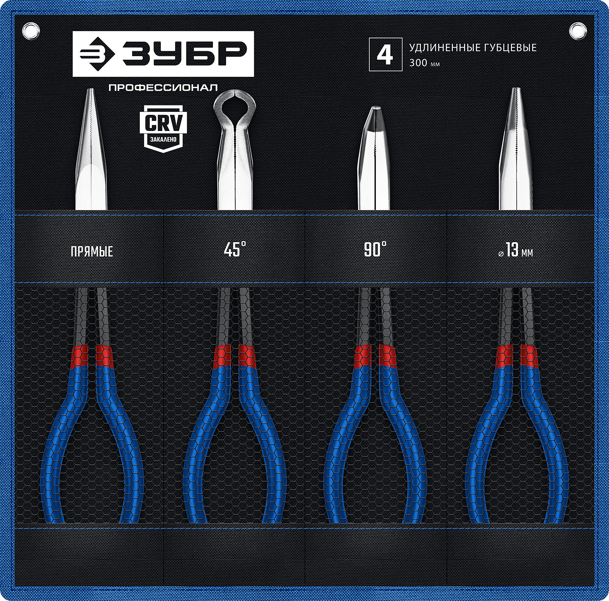 ЗУБР 4 шт набор удлиненного губцевого инструмента Профессионал (22026)