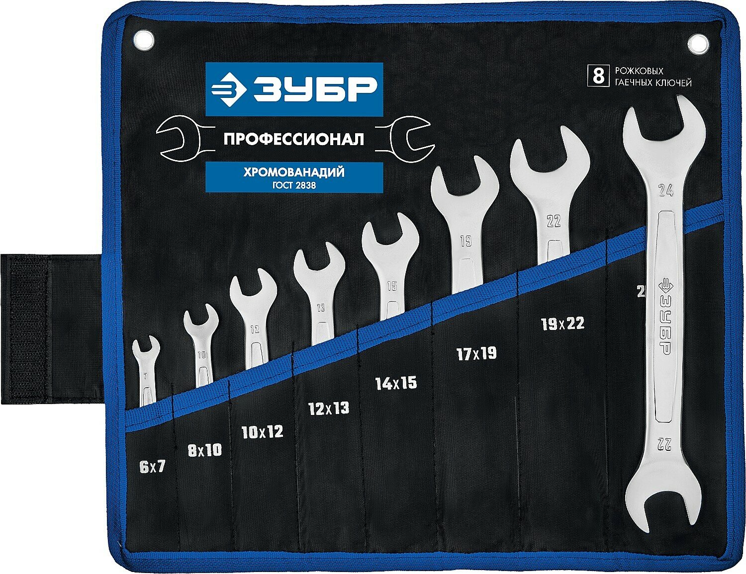 ЗУБР 8 шт 6 - 24 мм набор рожковых гаечных ключей Профессионал (27010-H8) (27010-H8_z01)