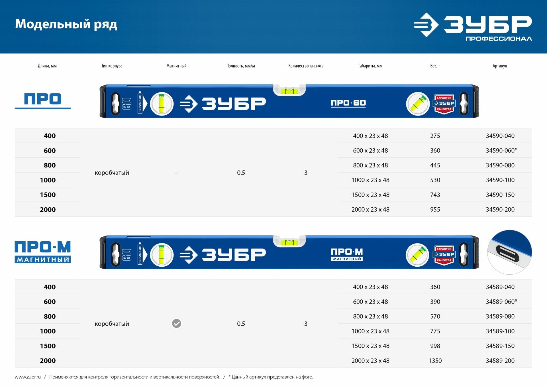 Сервис сравнения цен СкидкаГИД предлагает сравнить цены на товар «ЗУБР ПРО 1000 мм уровень с усиленным профилем Профессионал (34590-100)»