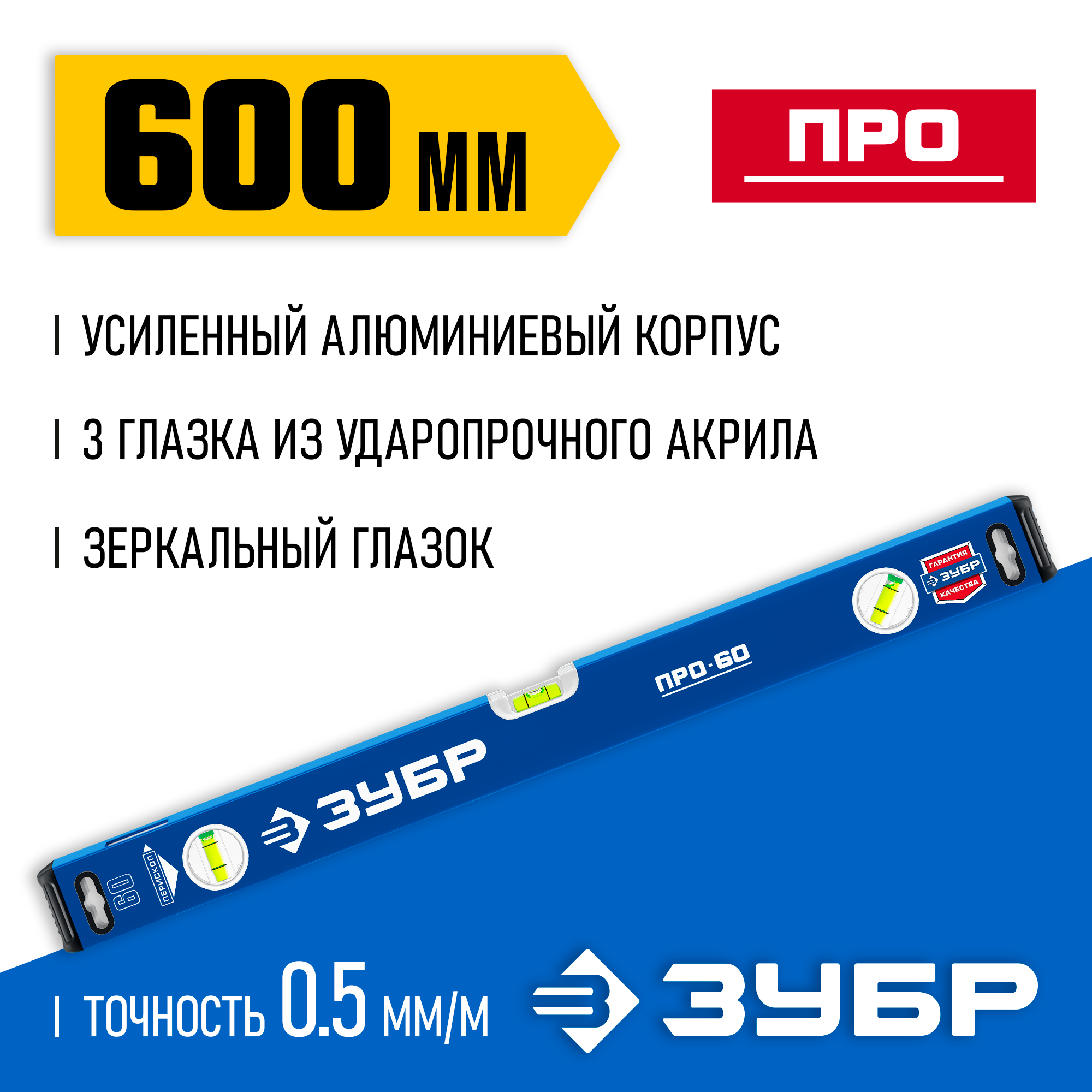 ЗУБР ПРО 600 мм уровень с усиленным профилем Профессионал (34590-060)