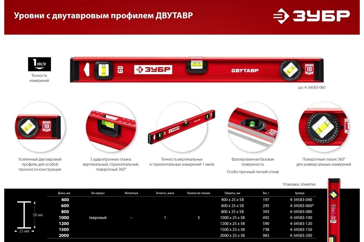 ЗУБР ДВУТАВР 1500 мм двутавровый уровень с усиленным профилем (4-34583-150) (4-34583-150_z01)