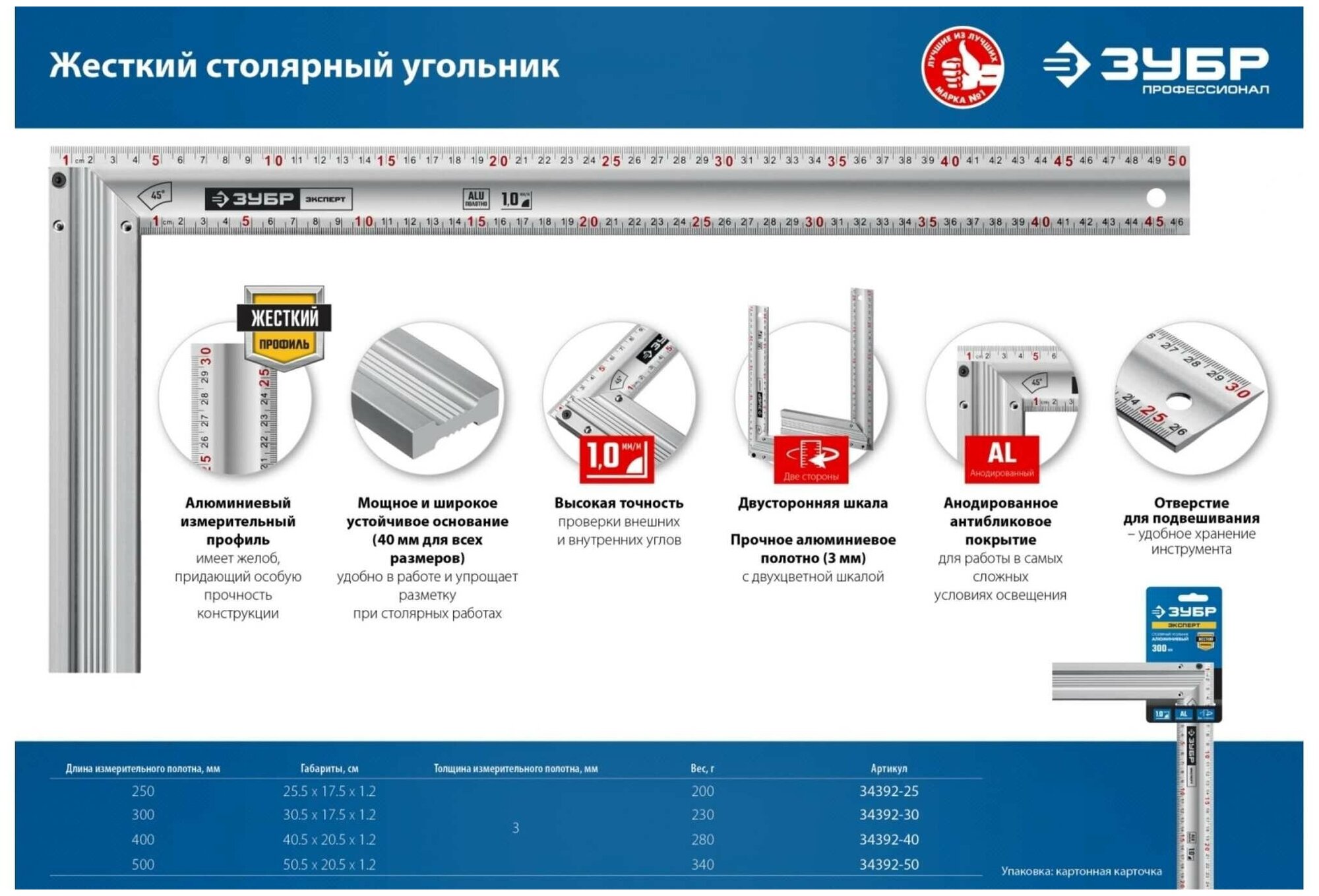 Сервис сравнения цен СкидкаГИД предлагает сравнить цены на товар «ЗУБР 500 мм жесткий столярный угольник Профессионал (34392-50)»