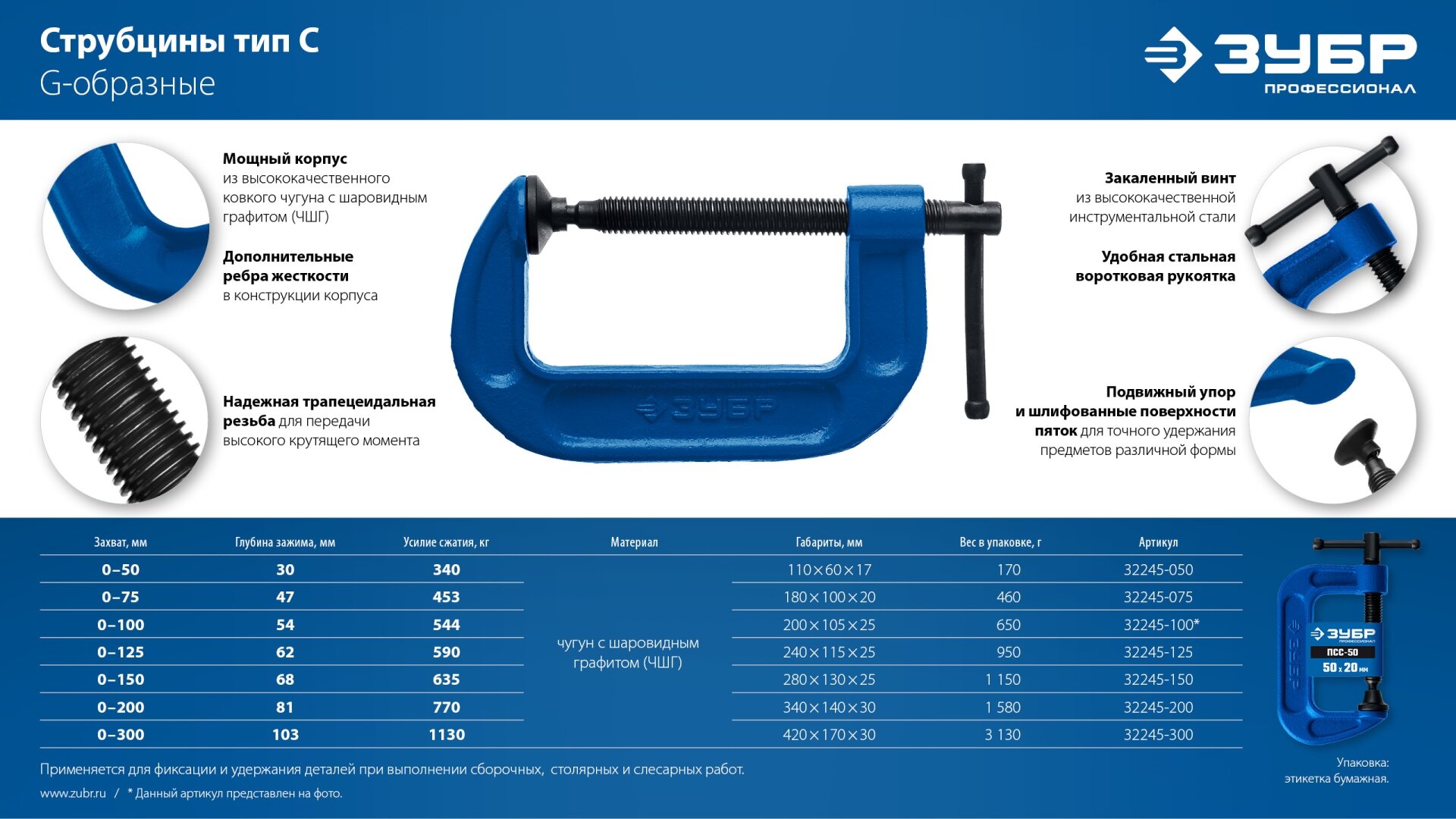 Сервис сравнения цен СкидкаГИД предлагает сравнить цены на товар «ЗУБР ПCС-50 50 мм чугунная струбцина тип С (G-образная) Профессионал (32245-050)»