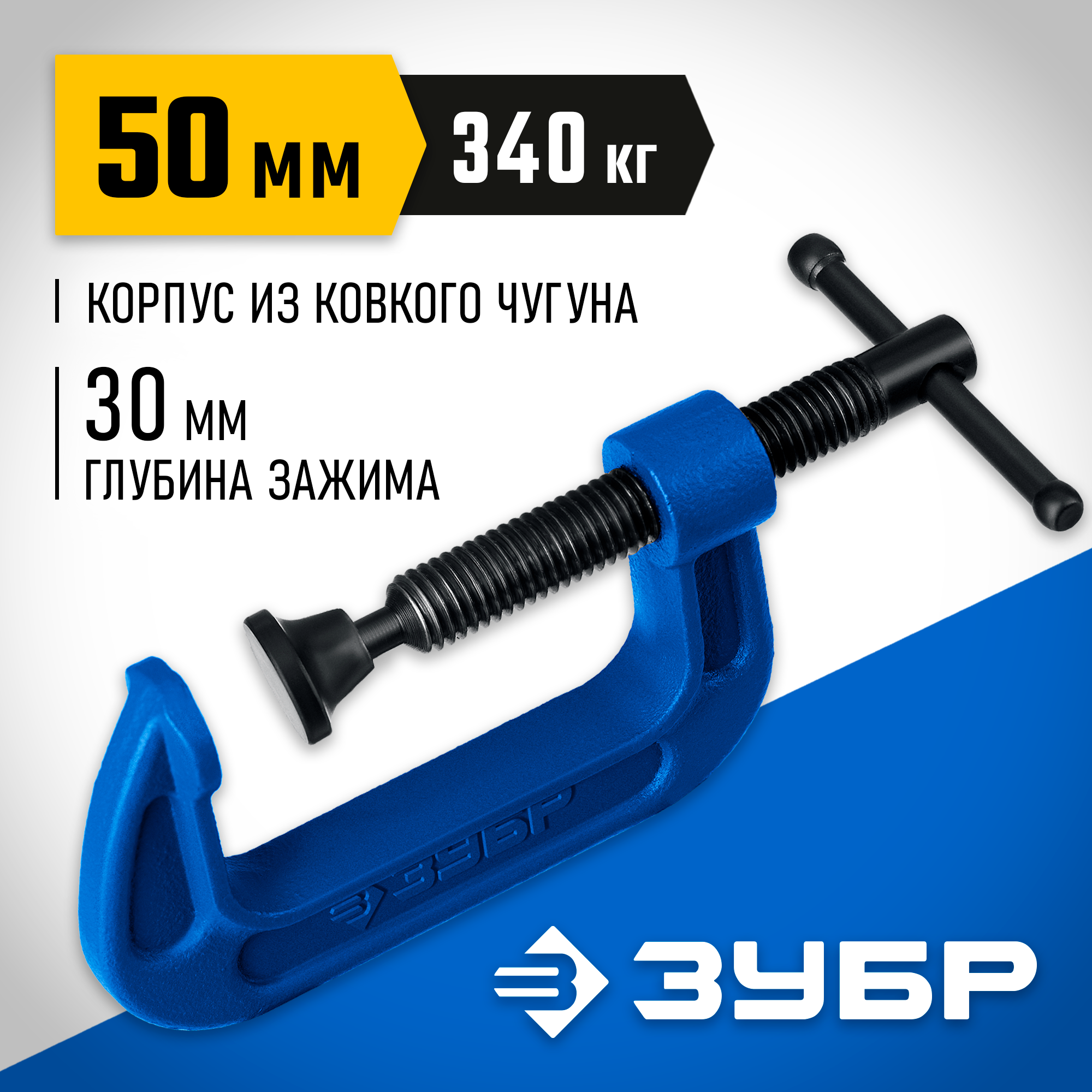 ЗУБР ПCС-50 50 мм чугунная струбцина тип С (G-образная) Профессионал (32245-050)