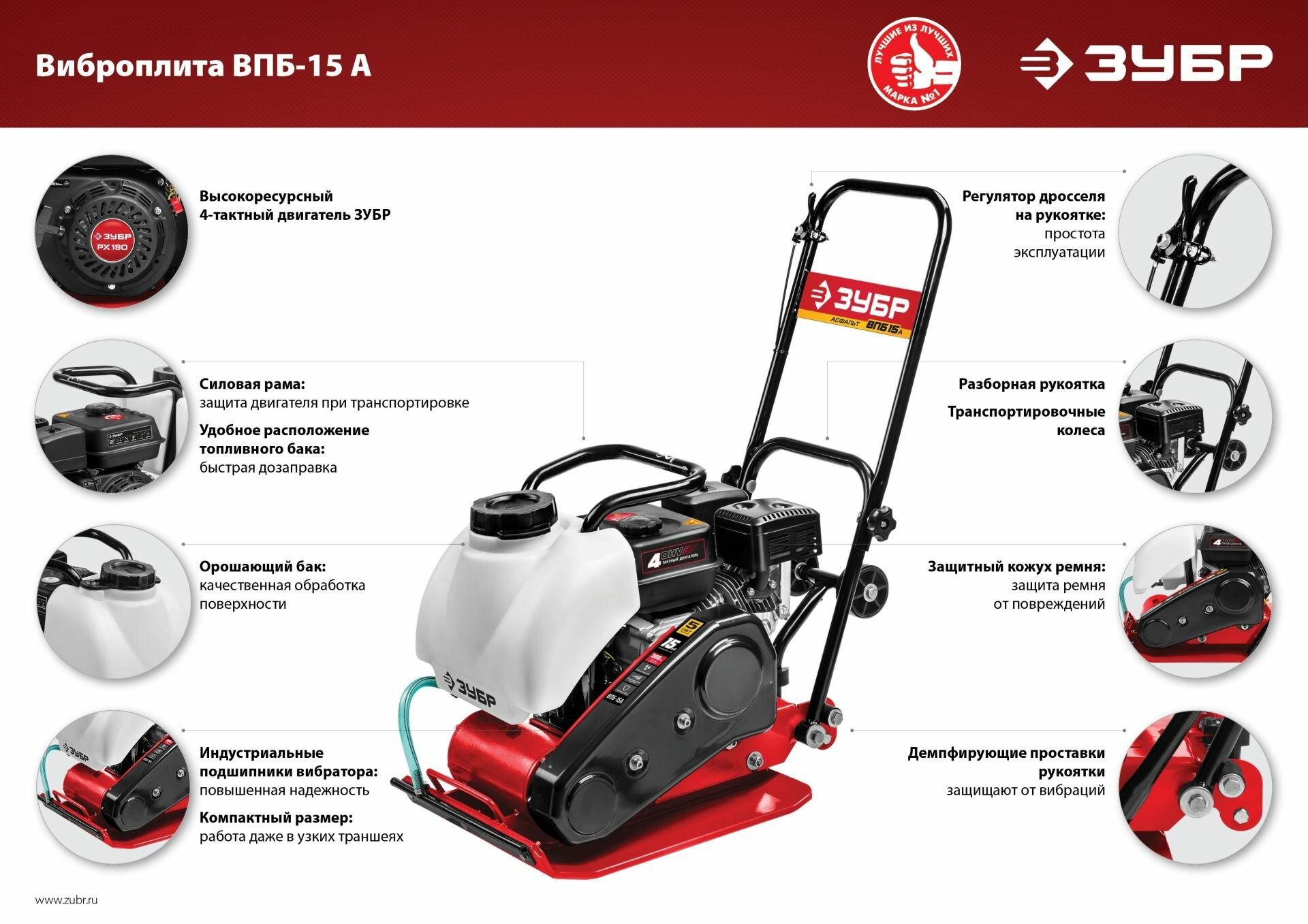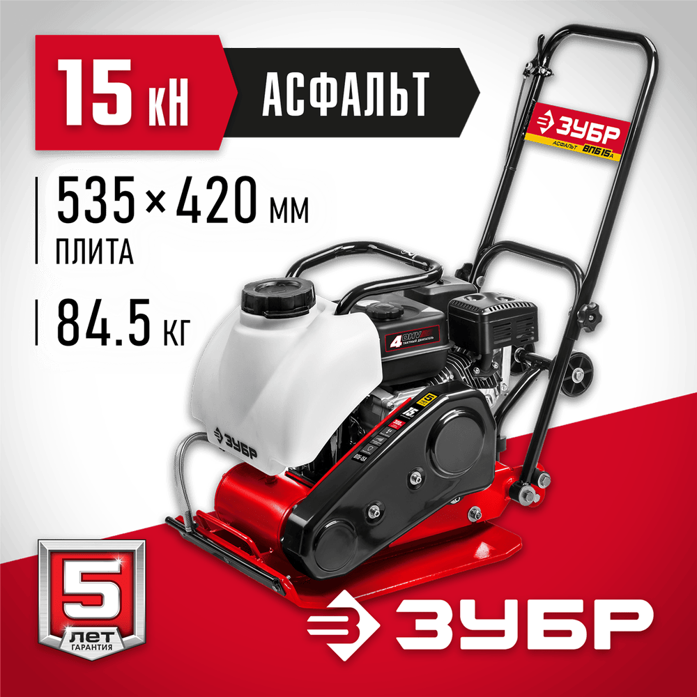 ЗУБР 15 кН 80 кг бензиновая виброплита (ВПБ-15 А)